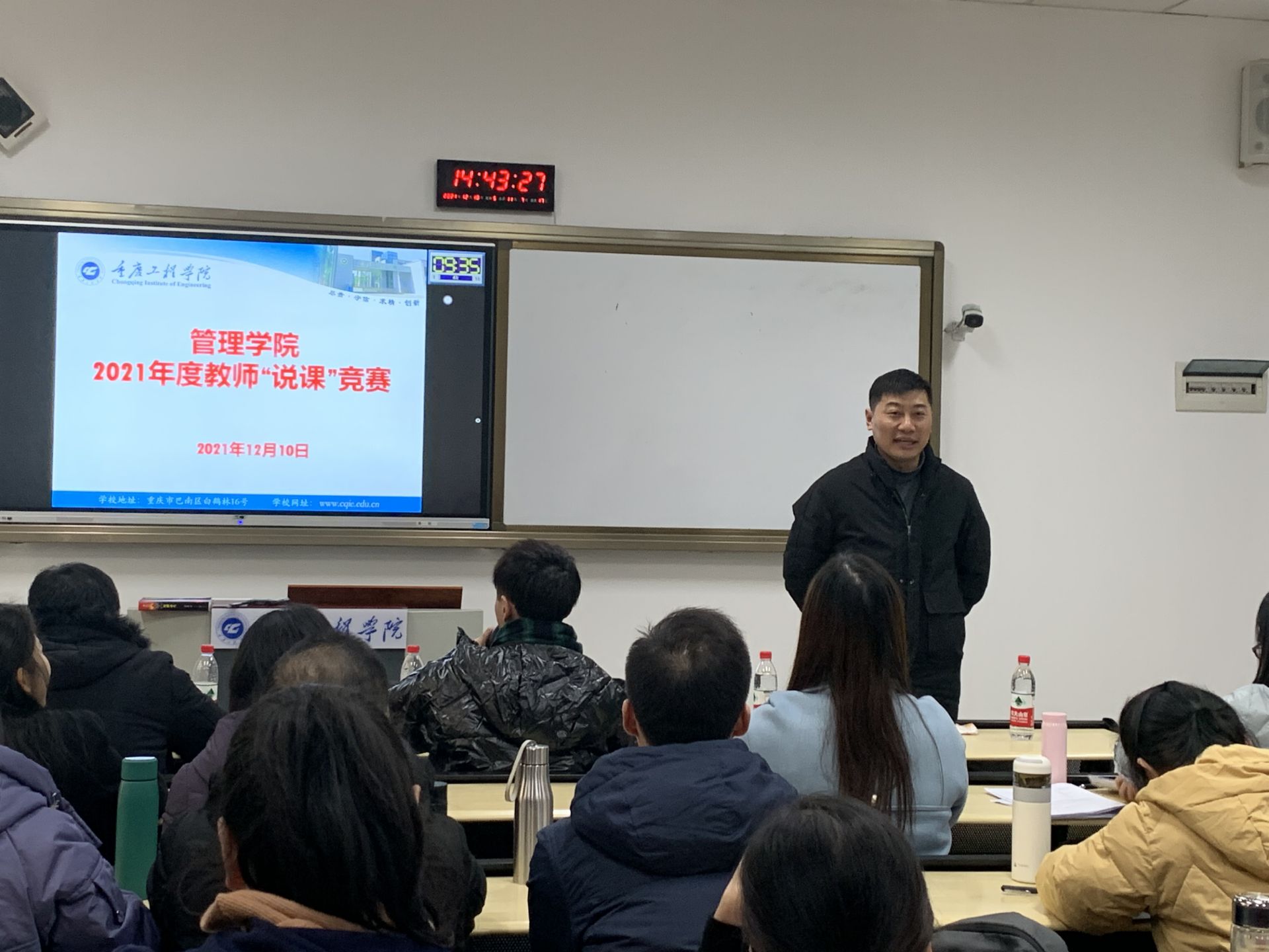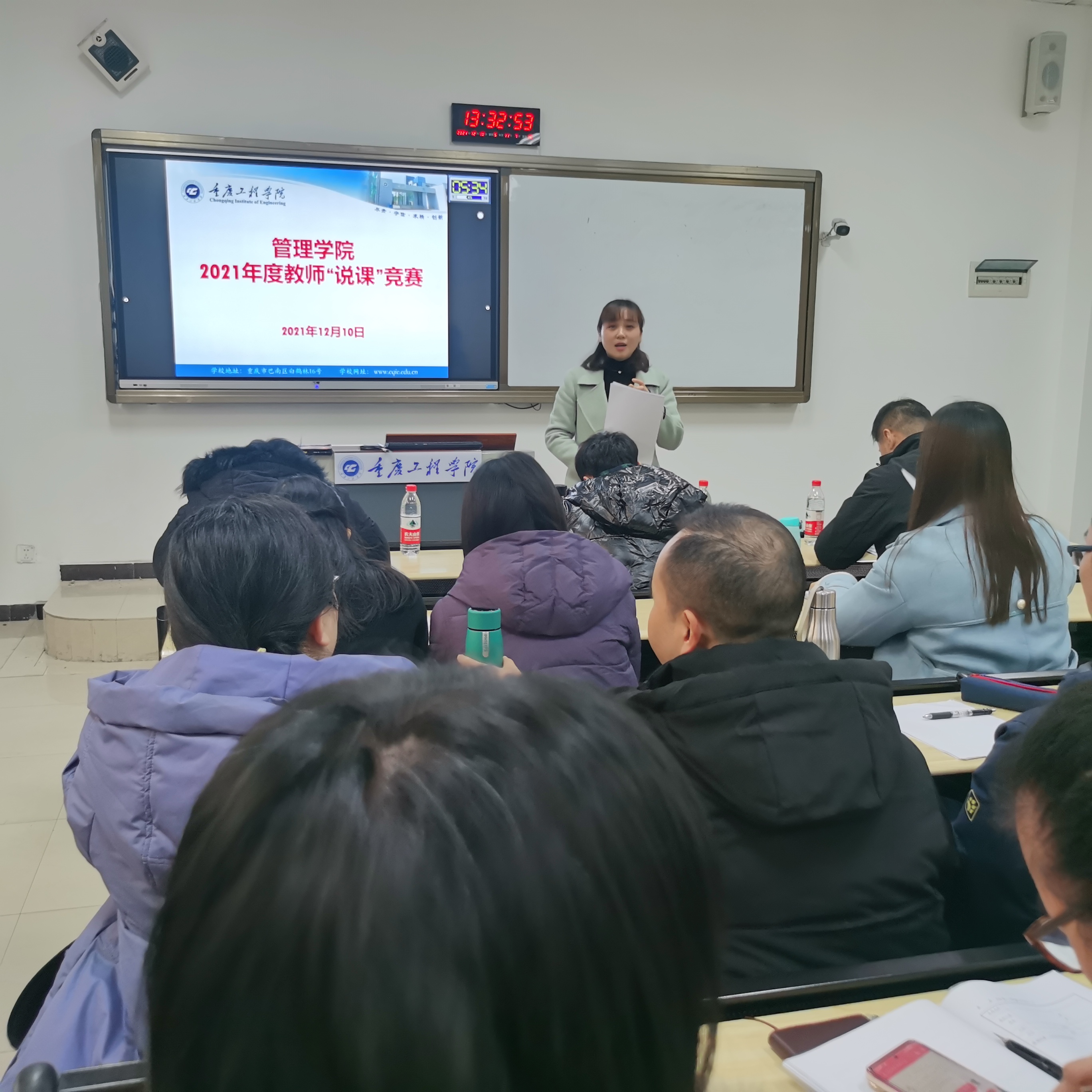 为了更好推进管理学院各本科专业内涵建设,促进学科发展,同时提升教师教育教学能力,管理学院在前期分系部全员“说课”活动基础上,于12月10日在6105教室开展了2021年度教师“说课”竞赛活动。比赛前期校督导曹明武教授对参赛教师竞赛材料进行了指导,比赛中校督导万伟博士、教务处陈可老师到现场进行了指导,管理学院副院长李玲、李英吉及全院教师参加了本次活动。