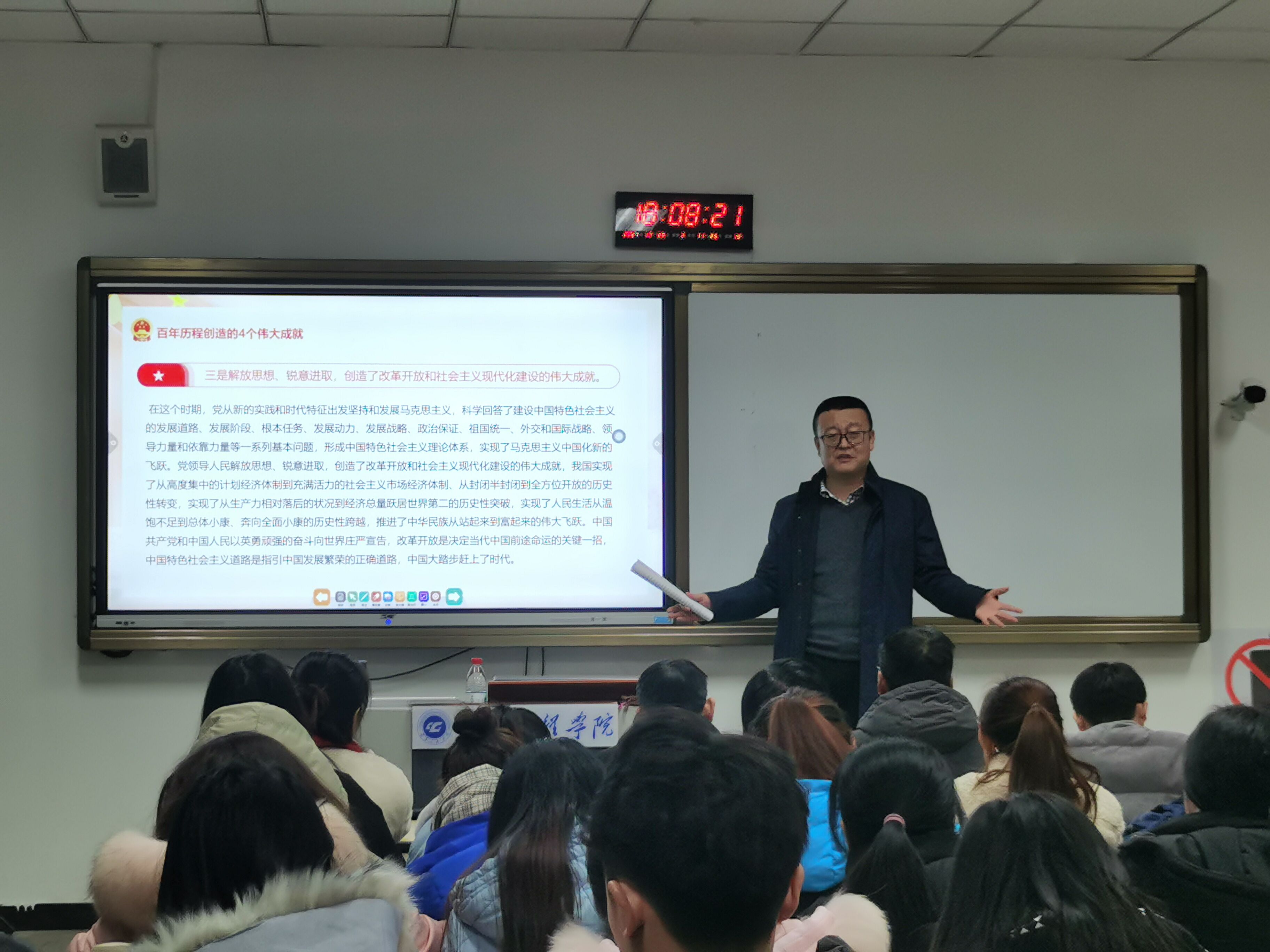宣讲会开始,王助理围绕审议通过2个文件、总结重大成就和历史经验的3个“需要”、马克思主义中国化的3次飞跃、百年历程创造的4个伟大成就、党的百年奋斗的5大历史意义、党的百年奋斗的10大历史经验、党的十八大以来13方面的重要成就、全党4个必须、党中央的1个号召九个方面向学生预备党员们解读了十九届六中全会精神。其中,王助理着重强调了党百年奋斗的历史成果和伟大成就,深刻阐述了党从根本上改变了中国人民的前途命运,开辟了实现中华民族伟大复兴的正确道路等历史意义;分析总结了党百年奋斗的历史经验,必须坚持党的领导。最后,王助理也寄语学生预备党员们要坚持走中国特色社会主义道路,到祖国最需要的地方去,实现自我价值。