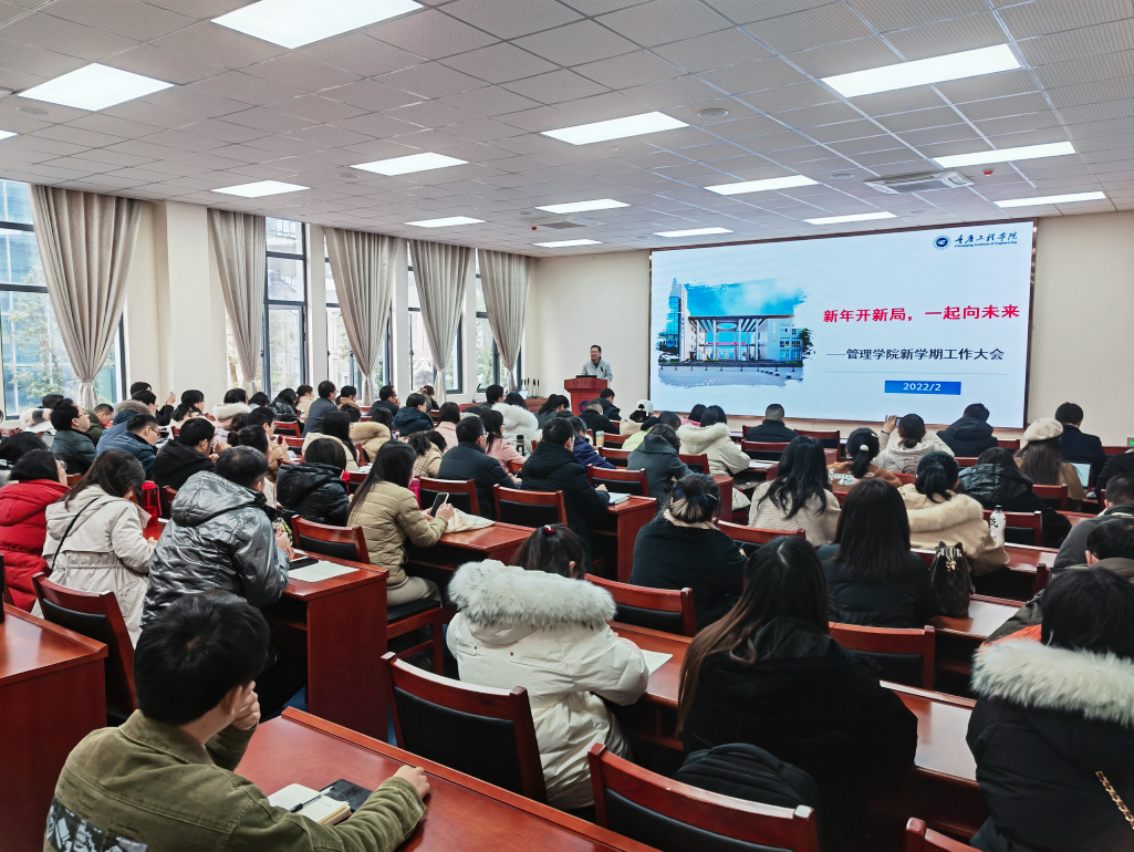 2022年2月21日14:00-15:30,第四会议室,管理学院召开2021-2022学年第二学期第1次全院工作大会,副校长王琼花、学院院长彭建仿、学院党总支书记刘达斌、副院长李玲、副院长李英吉,以及学院全体教职员工参加会议。