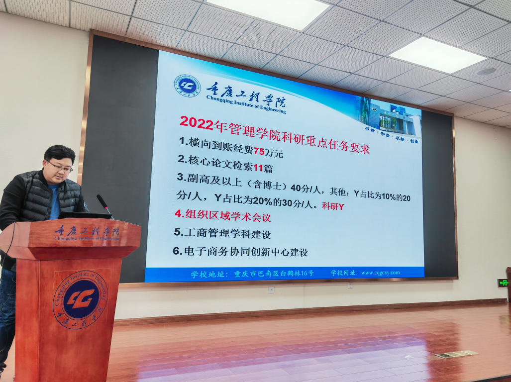 彭建仿院长作《新年开新局,一起向未来》的主题分享与动员。结合2021年学院整体工作,彭院长总结了目前学院发展存在的5个主要问题,继而提出2022年学院发展的10大重点工作。
