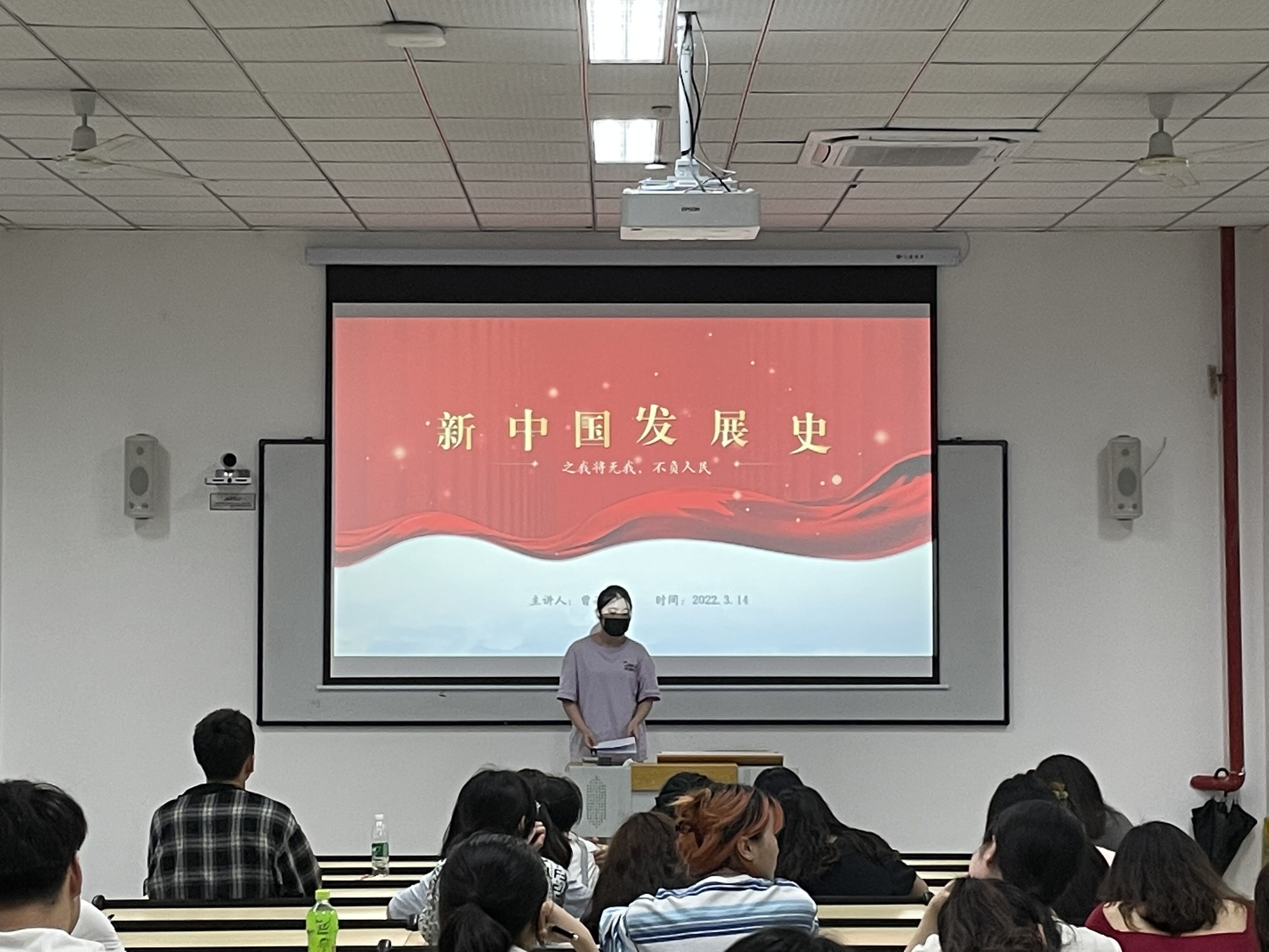活动开始,冉琦同志为同学们详细地讲解了冬季奥林匹克运动会的发展史,包括其成立的时间、地点、人物和意义。然后,她从7个大项、15个分项、105个小项介绍了2022年北京冬奥会赛事项目。除此,在北京冬奥会中,会徽“冬梦”、吉祥物“冰墩墩”、火炬“飞扬”和跳台滑雪场地“雪如意”等极具中国韵味。奥运健将——挑战自我的谷爱凌、追求卓越的羽生结弦和永不放弃的李玟仪,同学们从他们身上能够深刻地体会到奥林匹克精神。后续,曾莉娟同志从5G时代和举国抗疫两个方面介绍新中国从1949年到2022年的发展史,将新中国的发展历程用71个标志性词语表现出来,呈现出了一幅谋求发展、不懈奋斗的生动画卷。