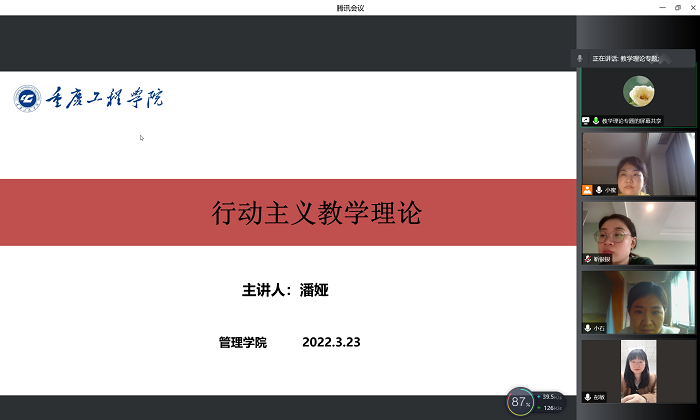 2022年3月23日,因疫情管控等因素,工商管理教师潘娅在线上为新教师开展了一场以教学理论为主题的培训。