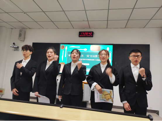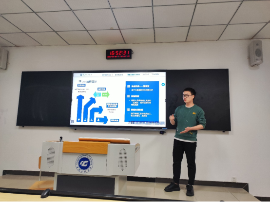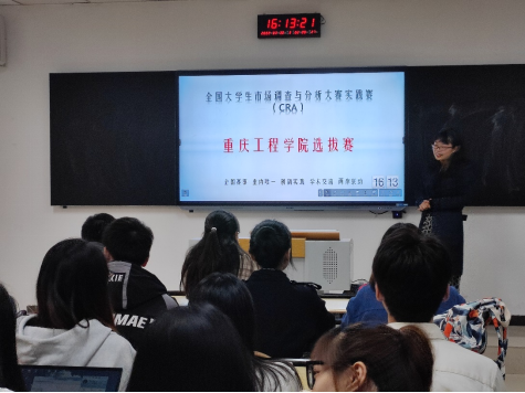 竞赛中,每支队伍按照答辩顺序依次上台陈述和答辩,然后评委老师们针对每个队伍的作品提出专业性问题,同学们再进行一一作答。比赛过程中每位同学都展现出自己饱满的精神状态和良好的专业素养,参加答辩的同学身着正装在台上从容不迫的介绍团队参赛项目、调查组织、调研过程、数据收集整理分析情况及调研结论建议等,其他同学则整齐的站在一旁以备随时应答。整个答辩过程组织有条不紊,同学们不仅较好的展示了重工学子良好的青春风貌,也展现出自己对市场调查、统计学等学科专业知识学习掌握、迁移应用、赛学结合的综合能力。
