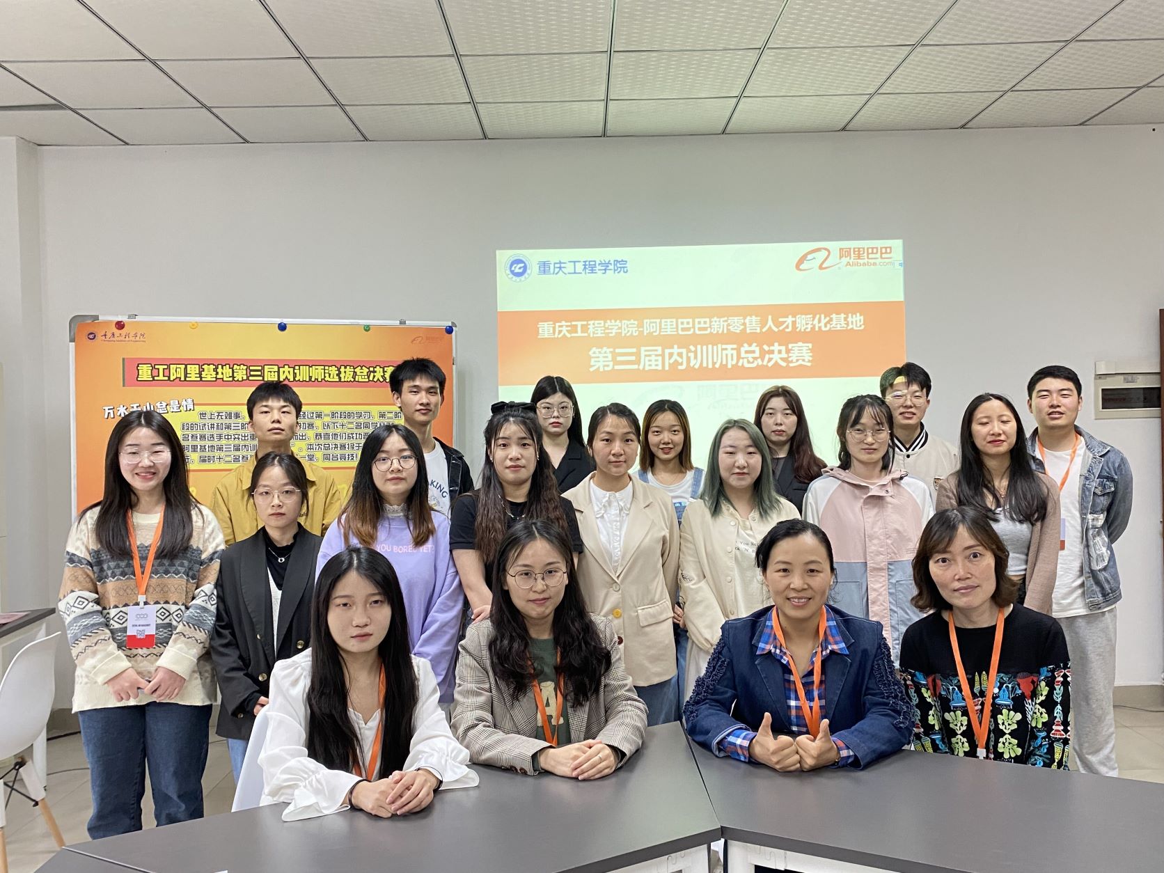 重庆工程学院阿里巴巴新零售人才孵化基地2022年第三届内训师选拔总决赛于5月18日下午顺利举行。经过第一阶段的学习,第二阶段的试讲和第三阶段内训师选拔初赛,共12名同学从34名参赛选手中突出重围,脱颖而出,进入到总决赛。参与本次内训师选拔总决赛的评委有阿里基地负责人曾霞,阿里基地实训班主任卫莉,阿里基地实训班主任赵鹏飞,阿里基地职能岗们。