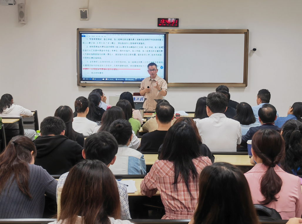 2022年5月27日下午14:00-15:00,6102教室,管理学院组织召开“迎接本科教学诊断性检查工作”专题会议,并开展“本科教学工作合格评估有关知识”专题培训。管理学院全体教职工参加本次会议和培训活动,校长助理兼学院院长简玉刚主持会议并组织大家开展学习。