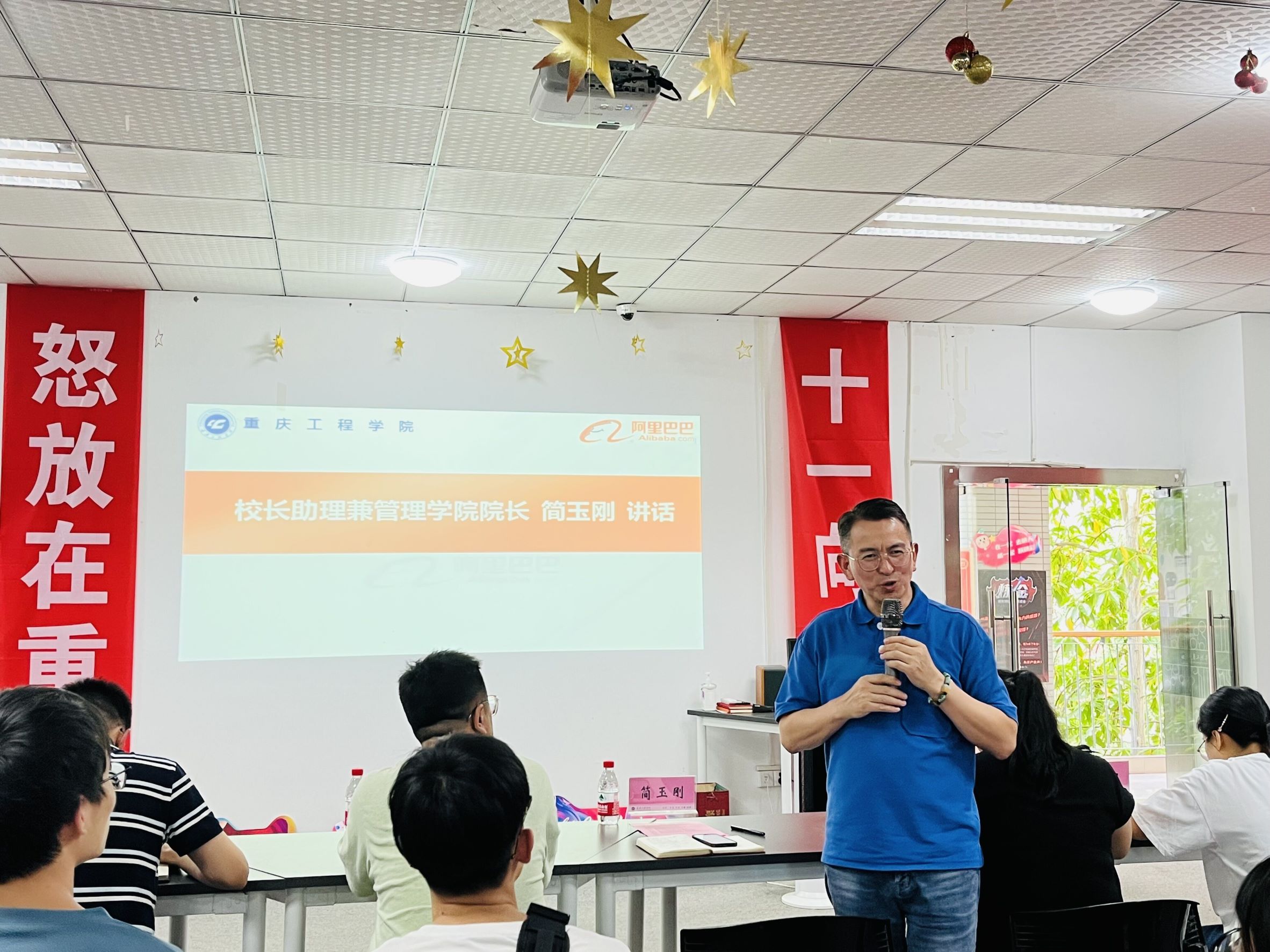 重庆工程学院阿里巴巴新零售人才孵化基地第三届青橙订单班开班仪式于6月24日下午在第三教学楼顺利开展。重工阿里基地第三届青橙订单班班主任赵鹏飞作为开班仪式的主持人,首先介绍参加本次开班仪式的领导和老师们,他们分别是阿里巴巴集团客户体验事业群高级运营专家李岩,重庆工程学院校长助理兼管理学院院长简玉刚,管理学院电子商务系主任宋超,管理学院电子商务系副主任芦亚柯、赵博,管理学院19级电子商务专业辅导员曾艳灵,重庆工程学院阿里巴巴新零售人才孵化基地负责人曾霞,重工阿里基地质培主管李卿,重工阿里基地青橙订单班业务主管何钟宇。