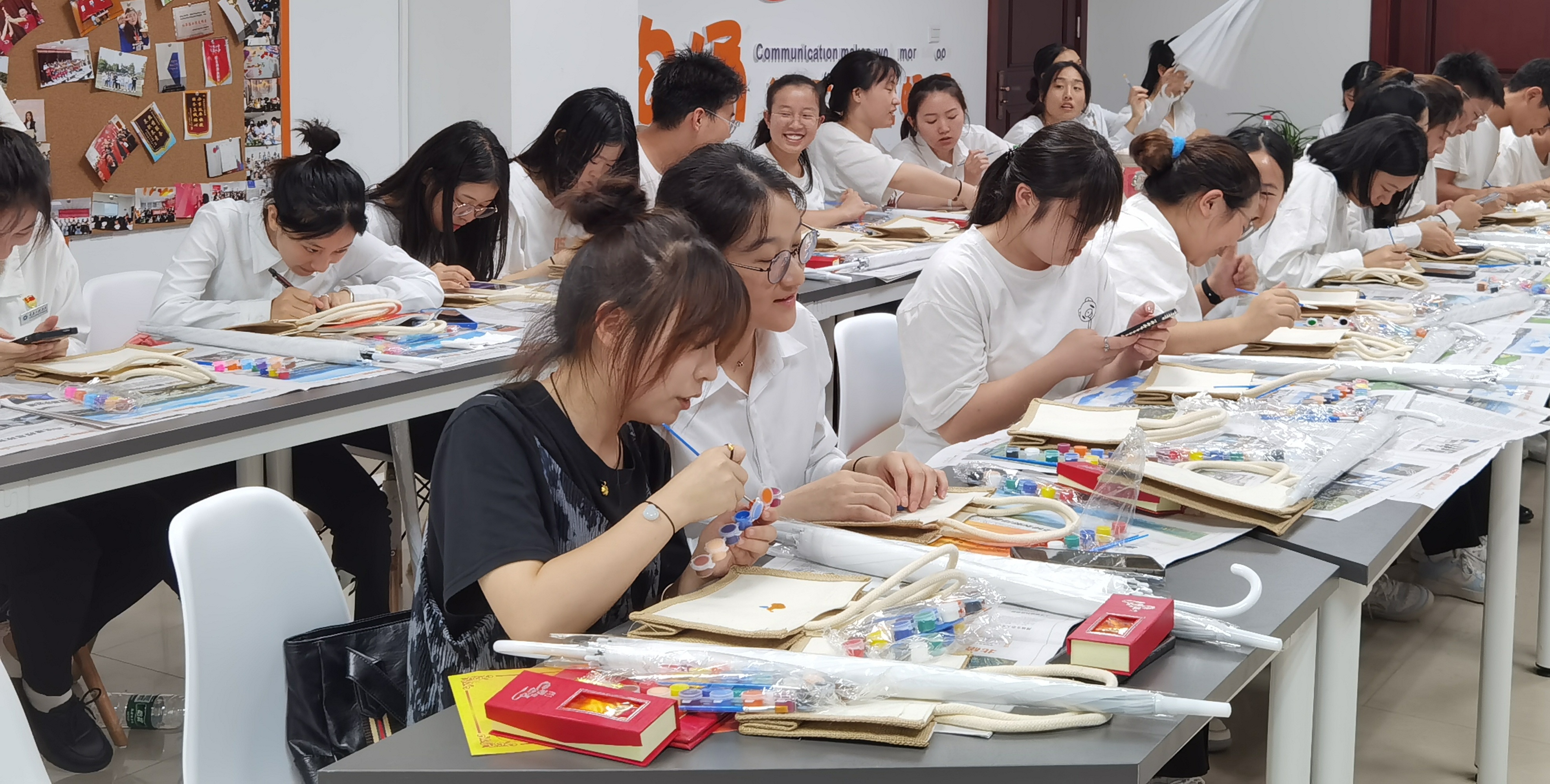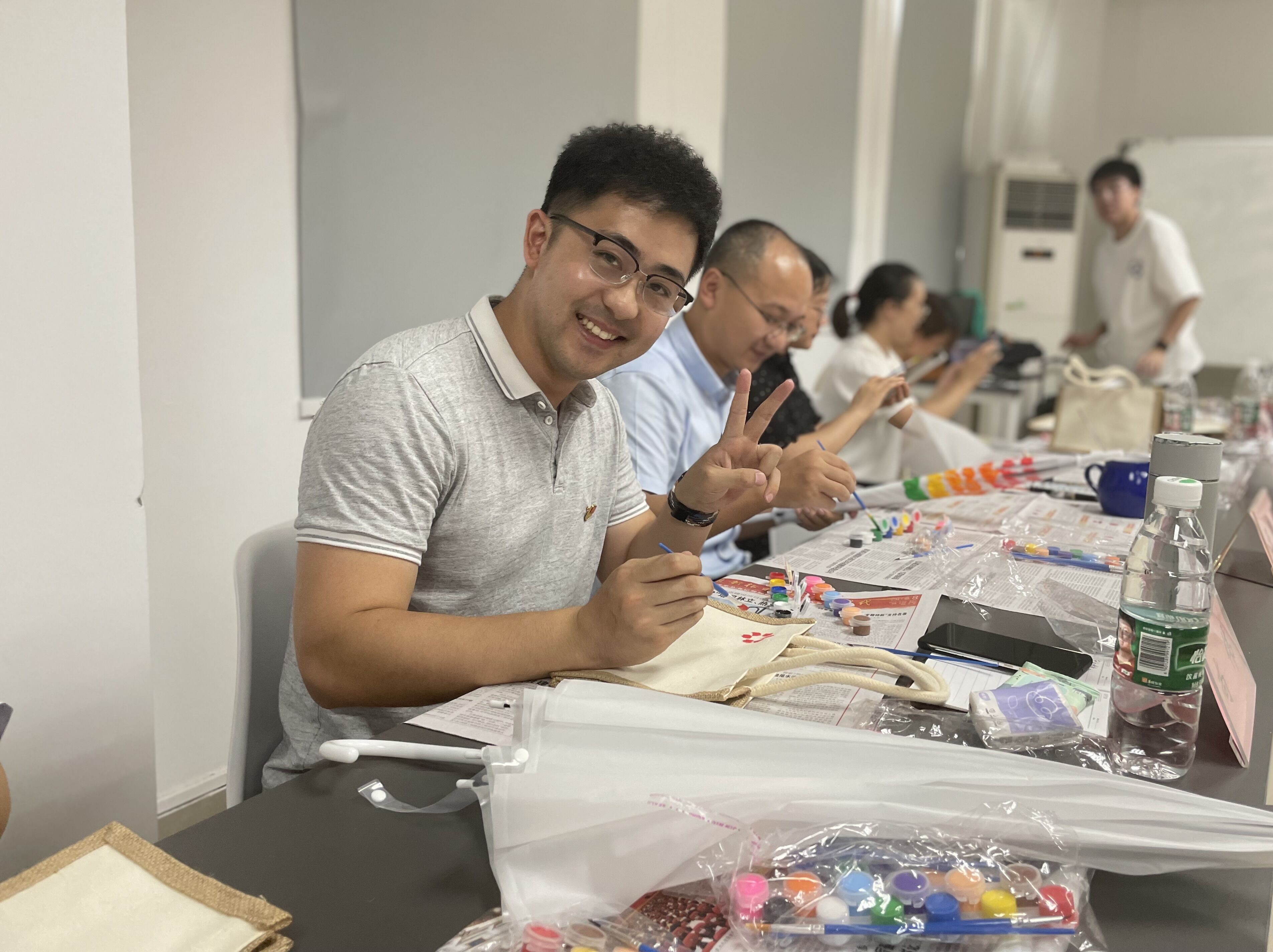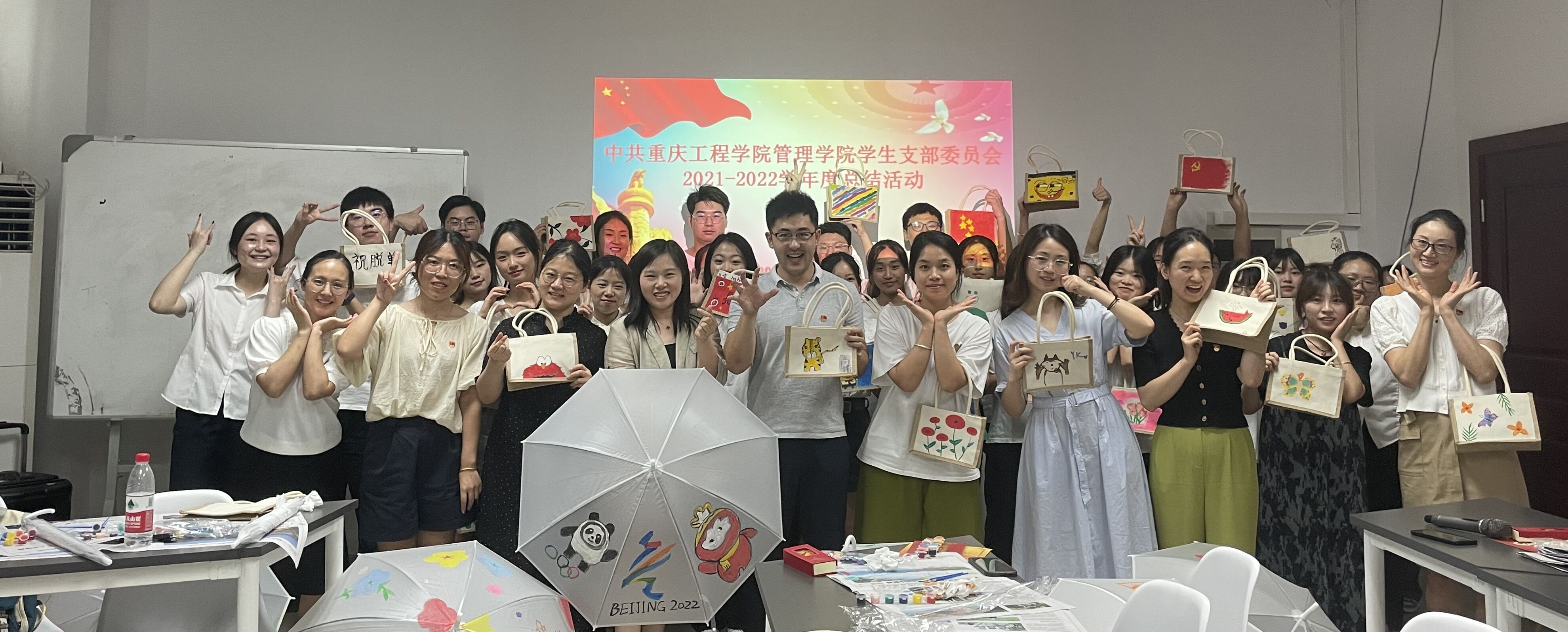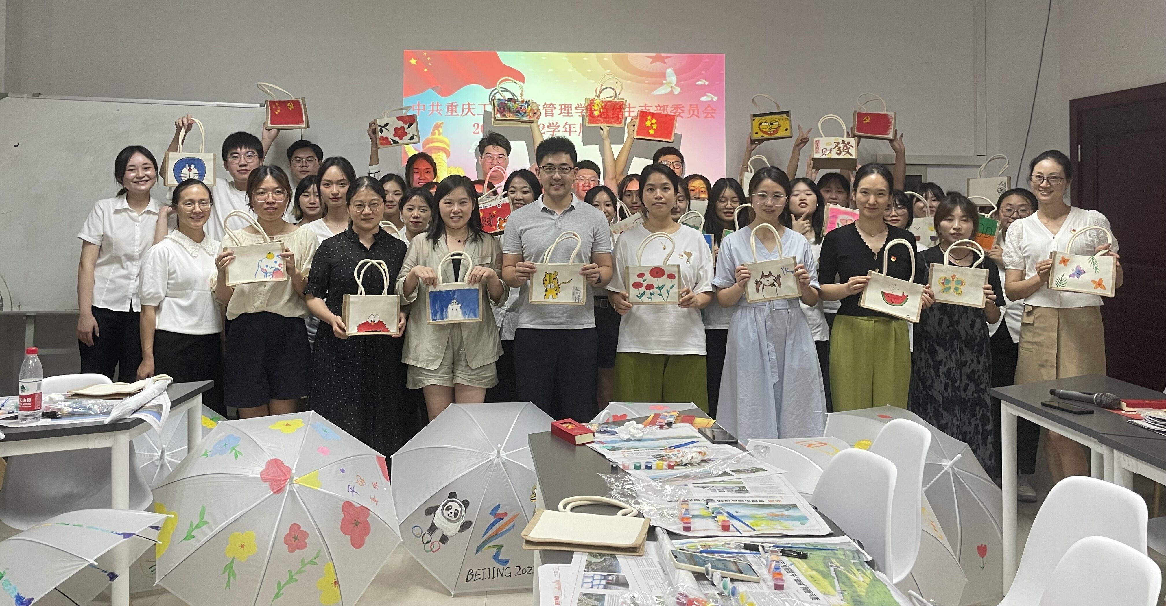 接下来,来到活动的第二阶段:爱国红色教育实践,手绘涂鸦红色长征帆布袋和雨伞。老师和同学们在各自的帆布袋和雨伞上手绘图画,尽情发挥着自己的想象力和创造力,不一会儿就让简单的帆布袋和雨伞变得精致、美丽。这正如我们在学习工作中一样,只有经过了努力和拼搏才能创造出精彩的成绩。