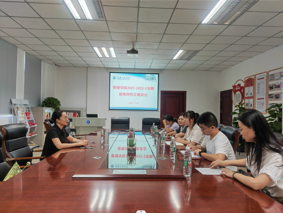 2022年7月14日9:00-10:00,413会议室,王琼花副校长深入管理学院,与本学期即将转正的新教师开展座谈会。