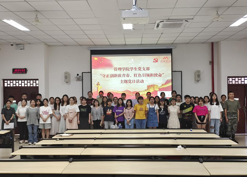 为纪念“七七事变”85周年,丰富学生党员的精神文化生活,培养学生党员的爱国热情,管理学院四个学生党支部于2022年7月9日在6204教室开展了“守正创新致青春,红色引领担使命”主题党日活动,学院四个学生党支部共计60名同学参与。
