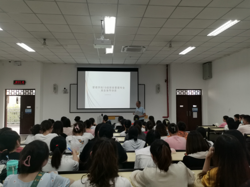 (文/图 就业科 张金波)2022年7月12日管理学院组织19级财务管理专业学生在6204进行就业指导讲座。本次讲座由管理学院学工主任王燕楠老师主讲,全体19级财务管理专业学生参与。