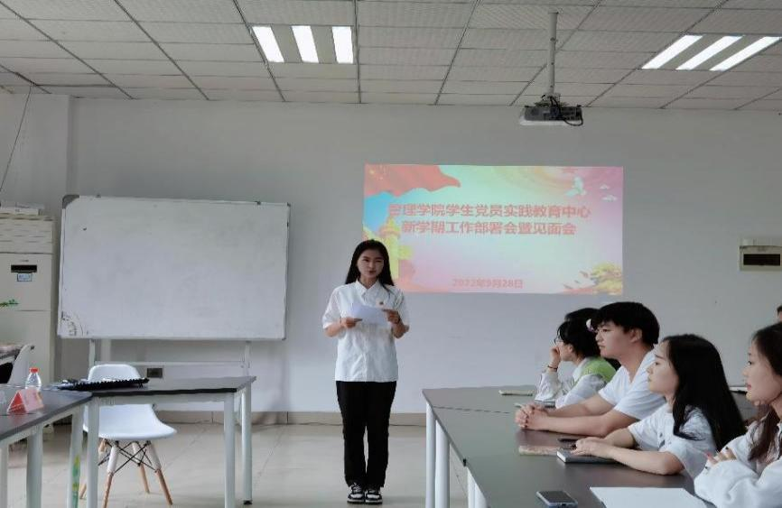 (文/图 学生党教中心 张丽梅)新学年新面孔,为让新聘任的干事尽快熟悉管理学院学生党员实践教育中心各项工作,提高工作效率,管理学院学生党员实践教育中心于2022年9月28日12:50在3304会议室召开了新学期工作部署会暨见面会。学院党总支副书记尚伟、组织委员荣菁菁、各学生党支部书记以及学生党员实践教育中心全体成员参加了本次会议,会议由办公室干事王璟萱主持。