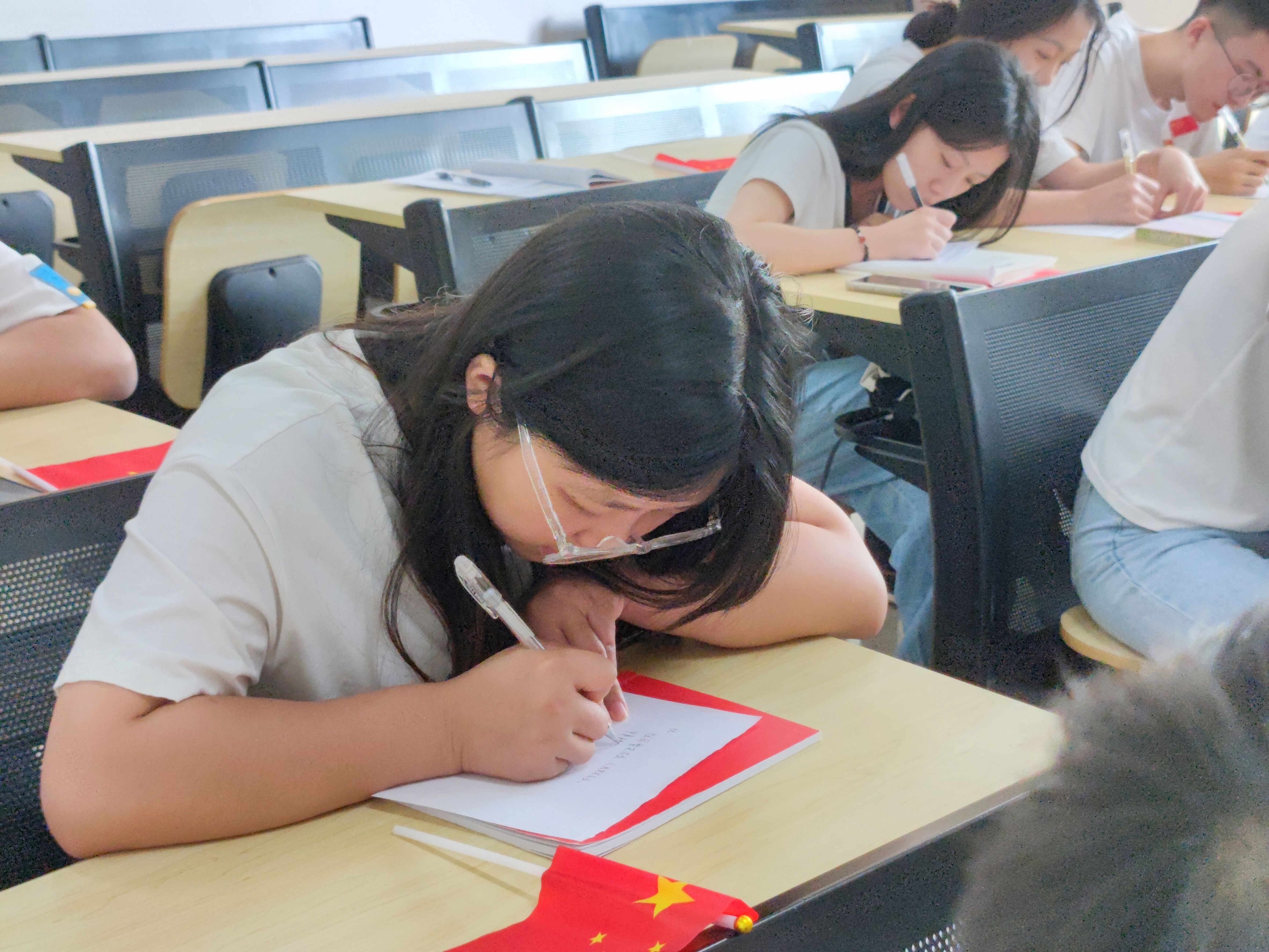 而后,参加活动的全体党员观看了中央电视台“烈士纪念日向人民英雄敬献花篮仪式”,向英雄先烈们致以崇高敬意,表达深切缅怀之情。大家有感而发,执笔写下对祖国的祝福语。其中一名同志写道:“敬历史长河浩荡,愿祖国昌盛繁荣。生在华夏,倍感荣光,来之不易,吾当自强"。