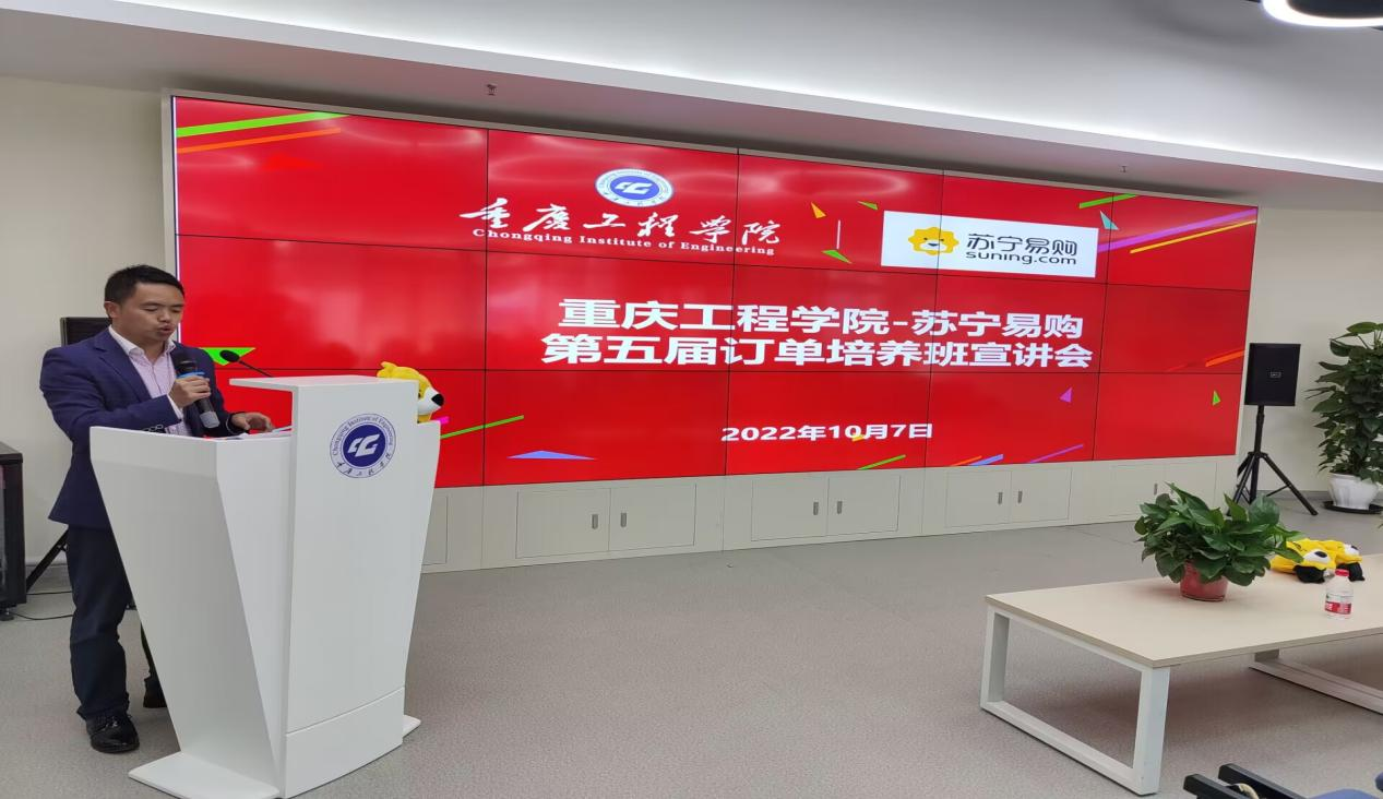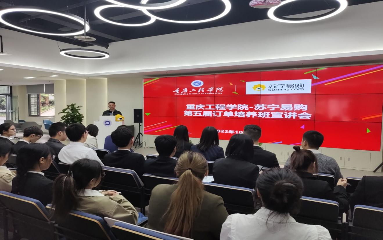 (文/图 数字营销系 周小波)2022年10月7日,管理学院在创新创业园路演大厅举行了市场营销专业苏宁易购第五届订单班宣讲招聘会。苏宁重庆地区管理中心人力资源总监黄润、人力资源经理何菊华一行到校进行宣讲及面试。管理学院院长简玉刚、订单班班主任杨仕梅、2019级本科市场营销专业学生及辅导员宋曼参加了此次宣讲会,会议由数字营销系主任周小波主持。