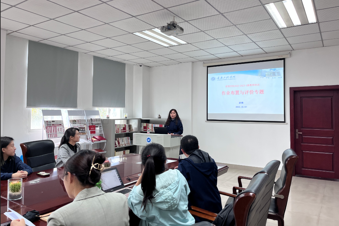 (文/图 办公室 周黎)为帮助新入职的教师更好地适应教育教学环境,更快地融入学校教师发展团队,从而增强教师的业务能力,提高教师的业务素质,管理学院特此开展2022-23-1学期新教师系列培训,本次的培训主题是作业布置与评价,于2022年10月7日在3教413会议室召开,培训导师为电子商务系副主任赵博,参加人员为2022下半年新入职及转岗教师。