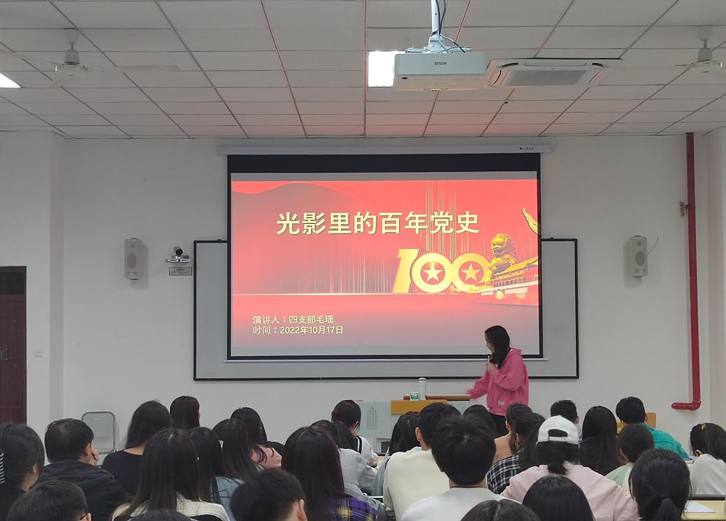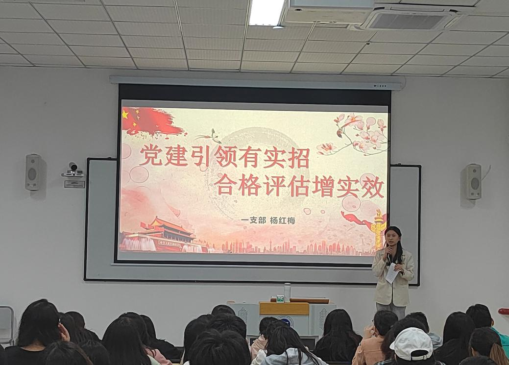 活动伊始,杨红梅同学以“党建引领有实招,合格评估增实效”为主题,围绕着党的章程和党的发展历程等方面进行了宣讲。杨红梅同学强调,只有每一名共产党员拥有强烈的宗旨意识和责任意识,我们的党才会有力量;同时,她鼓励同学们积极参与学院特色党建活动,在学校本科教学合格评估期间发挥学生党员的先锋模范作用,从小事做起从自己做起,以积极向上的精神面貌迎接评估。紧接着,毛瑶同学围绕党的百年光辉历程,带领同学们感悟党的初心使命,号召党员同志以史为镜,坚定理想信念,在党的百年奋斗征程中汲取智慧力量,在中华民族优秀传统文化的感召中昂首向前。最后的时政热点分享环节,同学们高度关注中国共产党第二十次全国代表大会情况,并表达了对祖国的美好祝愿。