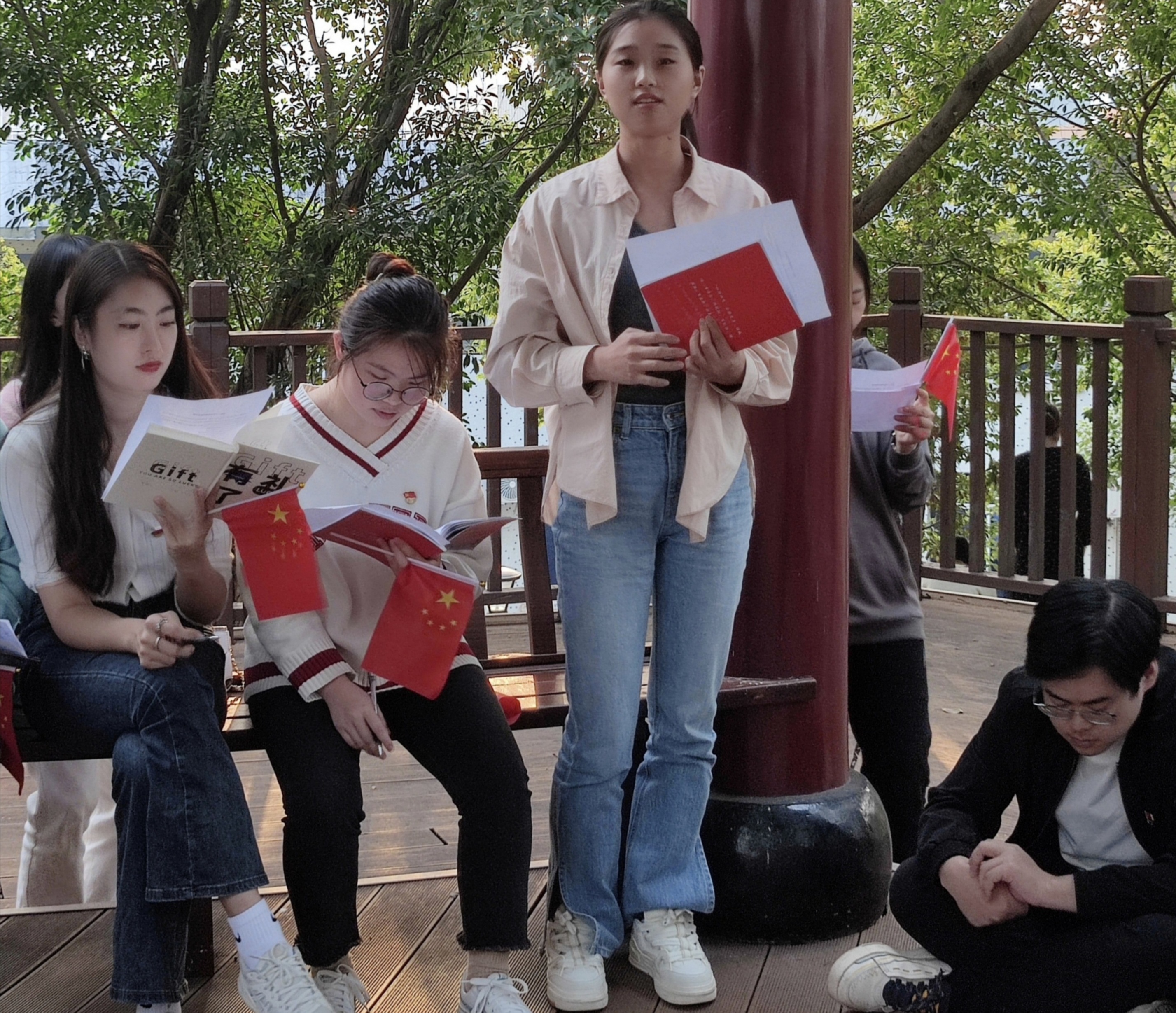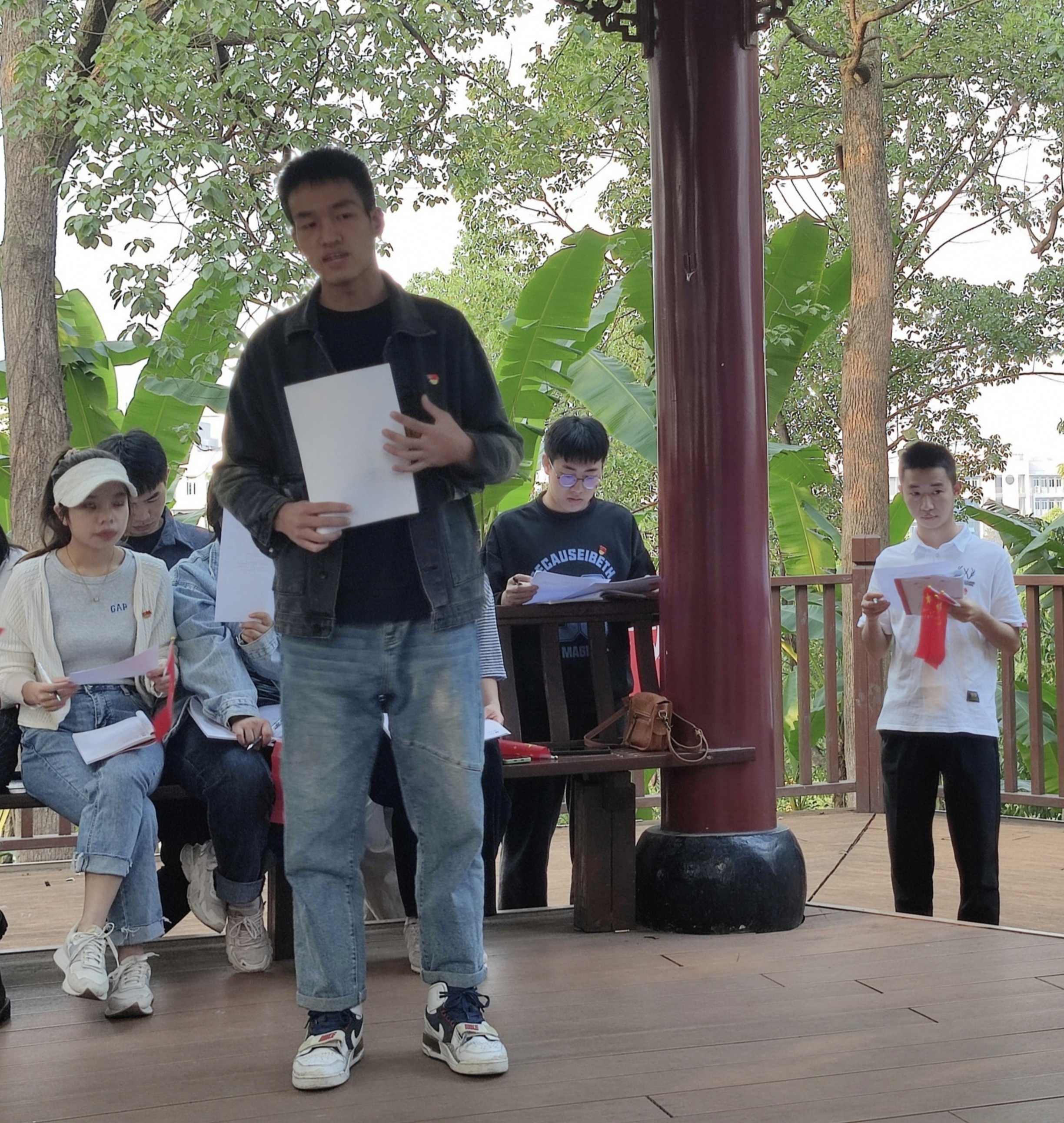 (文/图 学生第二党支部 李洲莲)10月22日,中国共产党第二十次全国代表大会胜利闭幕。为深入学习贯彻党的二十大会议精神,管理学院学生第二党支部于10月22日16:30在第一教学楼室外亭子处开展了“薪火青年说”第八期“学习党的二十大报告精神 坚定理想信念”主题党日活动。管理学院学生第二党支部书记曾艳灵、学生第四党支部书记罗雪及38名学生党员参与了此次活动。