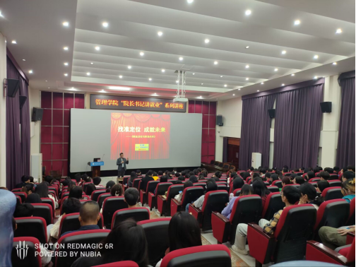 (文/图 就业科 张金波)为帮助毕业生确立明晰的就业方向,培养正确的就业观念,10月17日18:30,在阶梯报告厅举行了管理学院“院长书记讲就业”系列讲座。讲座由管理学院院长简玉刚主讲,2023届市场营销专业全体毕业生参加。
