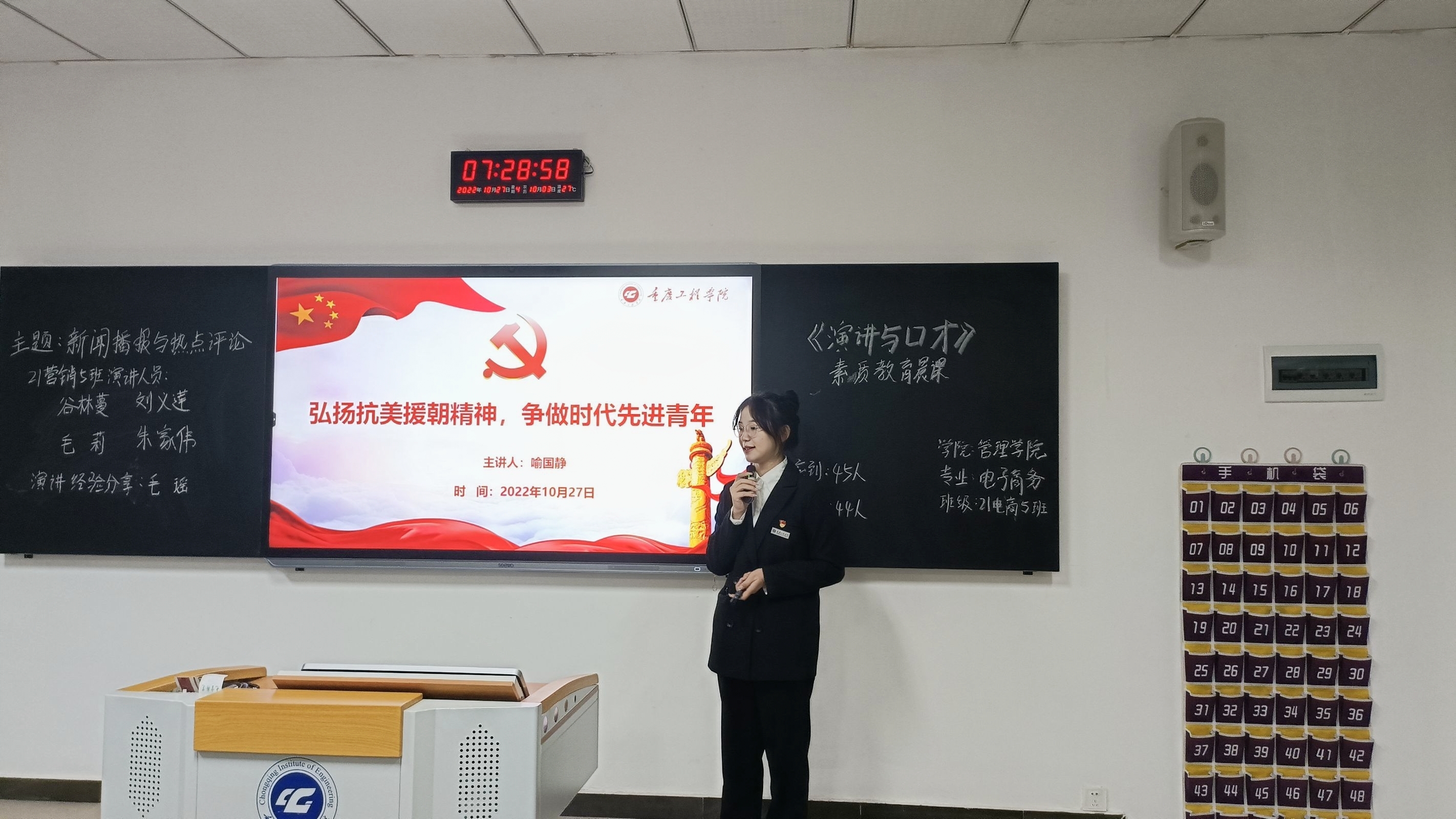 (文/图 学生党教中心 邹学微)为铭记革命先烈,传承抗美援朝精神,2022年10月27日7:20,管理学院四个学生党支部在第六教学楼开展了“大学生微党课”进班级活动。9名学生预备党员走进晨课教室,向2021级同学们进行了“承抗美援朝精神,做时代先进青年”主题宣讲。