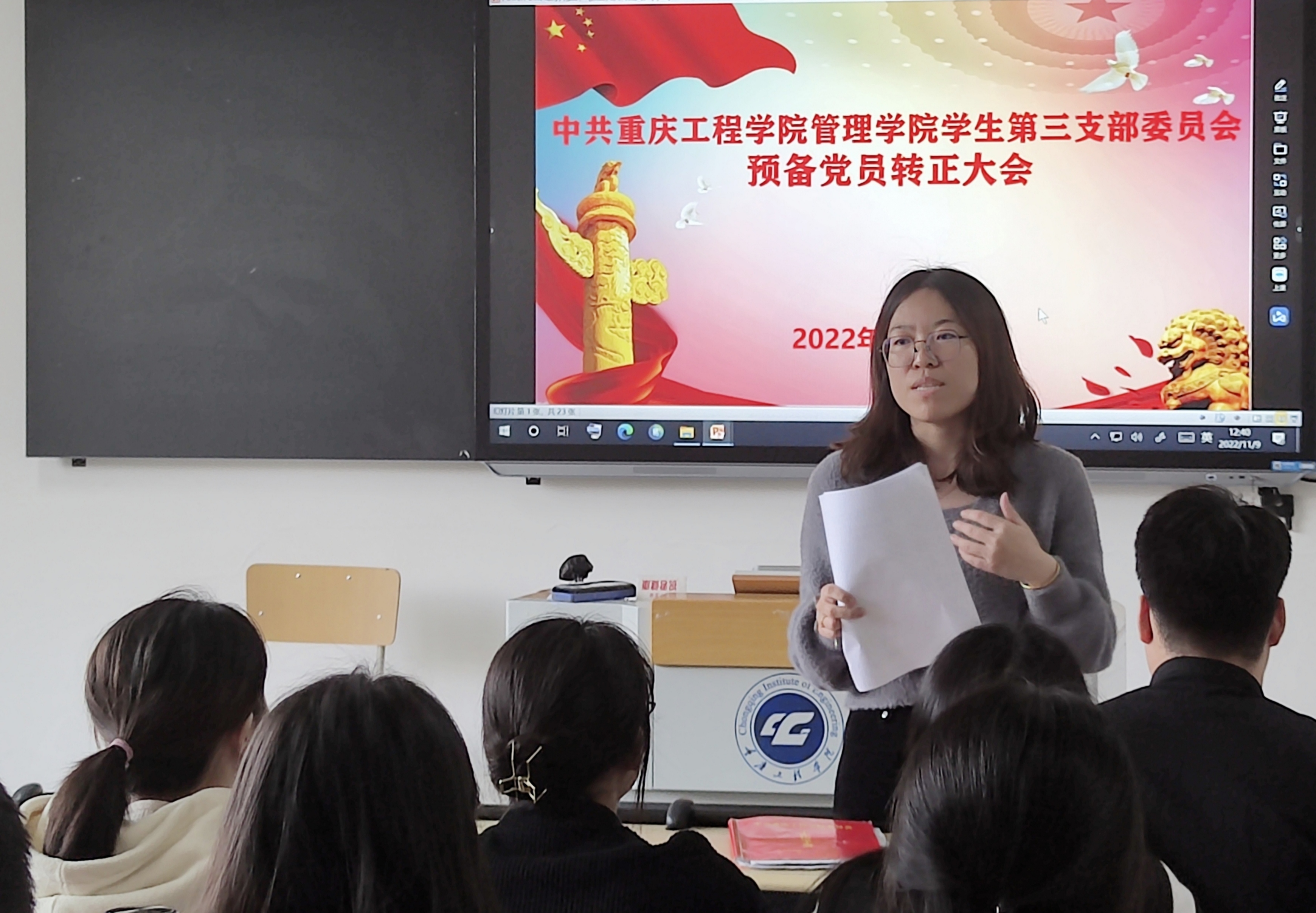 (文/图 学生党教中心 邹学微)为严格落实发展党员程序,壮大学生党员队伍,提升学生党员质量,管理学院四个学生党支部分别于11月9日、11月10日在第六教学楼召开了预备党员转正大会。会议由各学生党支部书记主持,支部正式党员、预备党员及相关入党介绍人参加了大会。