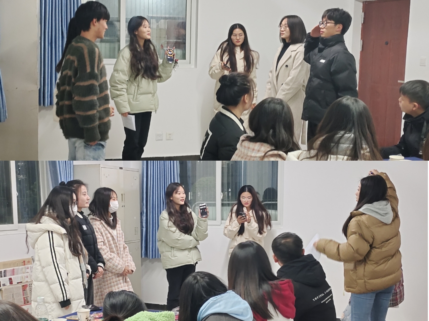 活动主要分为“踩报纸”、“天气预报”、“击鼓传花”、“你画我猜”四个小游戏环节。特别是在“击鼓传花”小游戏环节中,同学们带来了唱歌、诗歌朗诵等才艺展示。其中许俊林同学介绍了自己的家乡,引发了同学们的积极讨论,促进了中心成员之间的了解。之后的“你画我猜”小游戏环节,各小组成员分工明确,相互合作,在欢乐的游戏氛围中增强了同学们的团队协作意识。