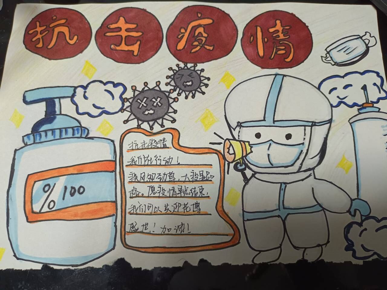 在本次比赛中,同学们用积极向上的视觉语言,独特新颖的创作思维,记录了疫情中的感人故事。同学们以“艺”战“疫”,汇聚正能量,用一件件作品致敬身边的防疫工作者,同时也展现出了同学们勇于担当、不怕困难、迎险而上的精神风貌。