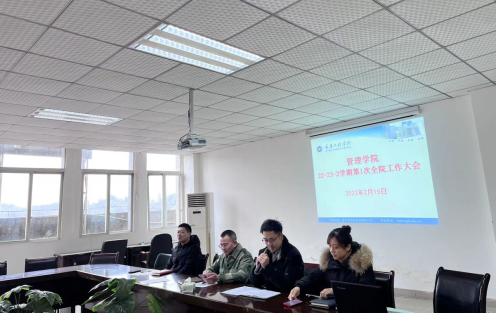 (文/图 办公室周黎)2023年2月15日14:30-16:00,管理学院在3教602召开2022-2023学年2学期第1次全院工作大会,学院院长简玉刚、学院党总支副书记尚伟、学院副院长李玲、学院副院长徐先航,以及学院全体教职员工参加会议。