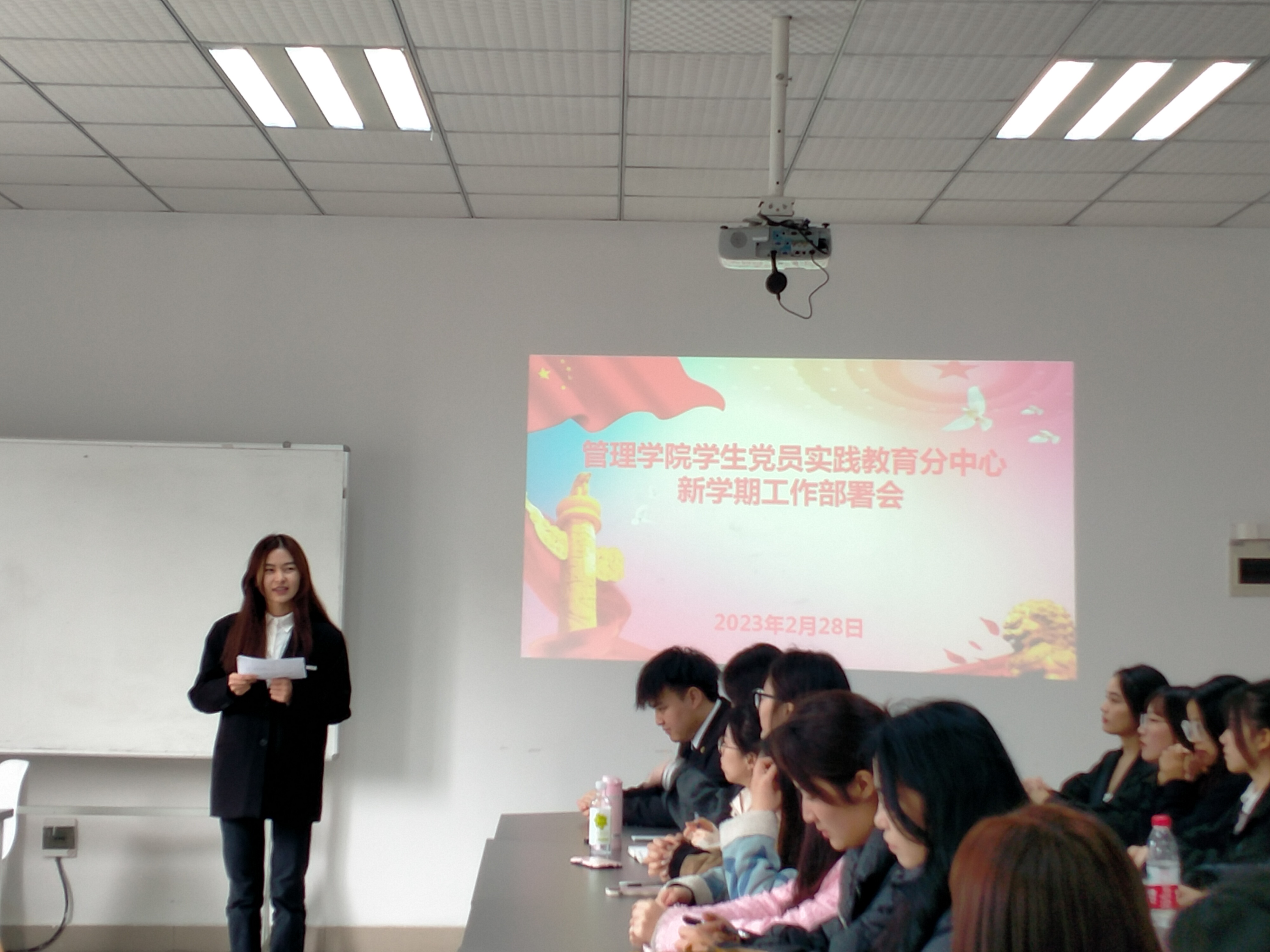 (文/图 学生党教中心 邹学微)新学期新起点,为进一步明确新学期的工作目标,确保各项工作顺利开展,管理学院学生党员实践教育分中心于2月28日在第三教学楼召开了新学期工作部署会。学院党总支书记尚伟、组织委员荣菁菁以及学生党员实践教育分中心全体成员参加了本次会议,会议由办公室干事王璟萱主持,共计34人参与。