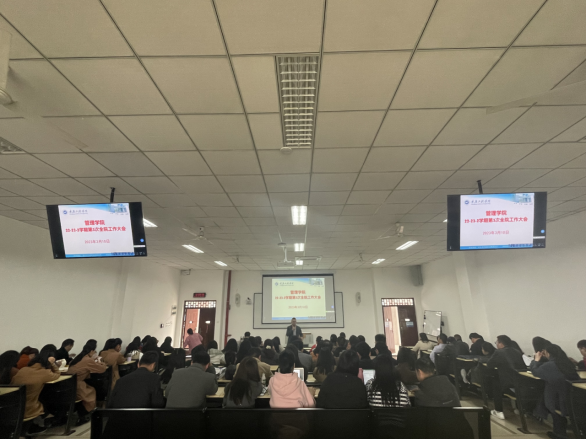 (文/图 办公室 周黎)2023年3月10日,管理学院在3教602召开2022-2023学年2学期第3次全院工作大会,学院院长简玉刚、学院党总支副书记尚伟、学院副院长李玲、学院副院长徐先航,以及学院全体教职员工参加会议。