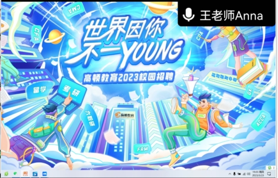 3月23日19:00,管理学院就业科邀请高顿教育集团举行线上招聘会。本次招聘会通过腾讯会议线上举行,高顿教育HR王经理举行了宣讲。高顿教育在全国有40多家分公司,覆盖50个城市、100多个教学点。公司本次针对管理学院2023届毕业生招聘课程规划师到上海实习就业,学生在上海总部待满1年后,即可内部申请去全国分公司的教学点。同时,公司提供了优越的福利待遇,共有23位同学参加本次线上招聘会。