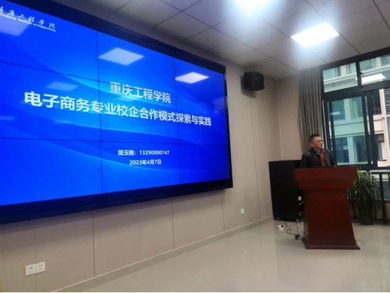 (文/图 管理学院 宋超)2023年4月7日,由重庆市高等教育学会电子商务专业委员会、重庆师范大学主办,重庆工程学院管理学院协办的“2023年重庆市高等学校电子商务专业创新教育高峰论坛”在重庆师范大学举行。管理学院院长简玉刚受邀在会上作“电子商务专业校企合作模式探索与实践--以重庆工程学院为例”的主题报告。该主题报告围绕国家电子商务、数字经济产业发展十四.五规划,分析了电子商务专业的发展背景、面临的问题,并阐述了电子商务专业人才培养定位与目标、人才培养模式,并重点分享了电子商务专业校企合作的方式及实施的路径,为电子商务专业的校企协同育人提供了很好的参考与借鉴。