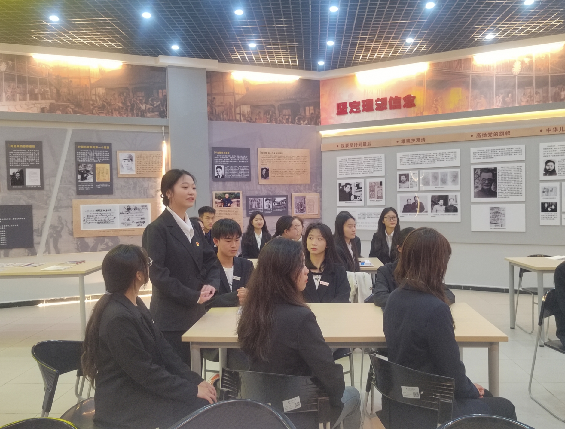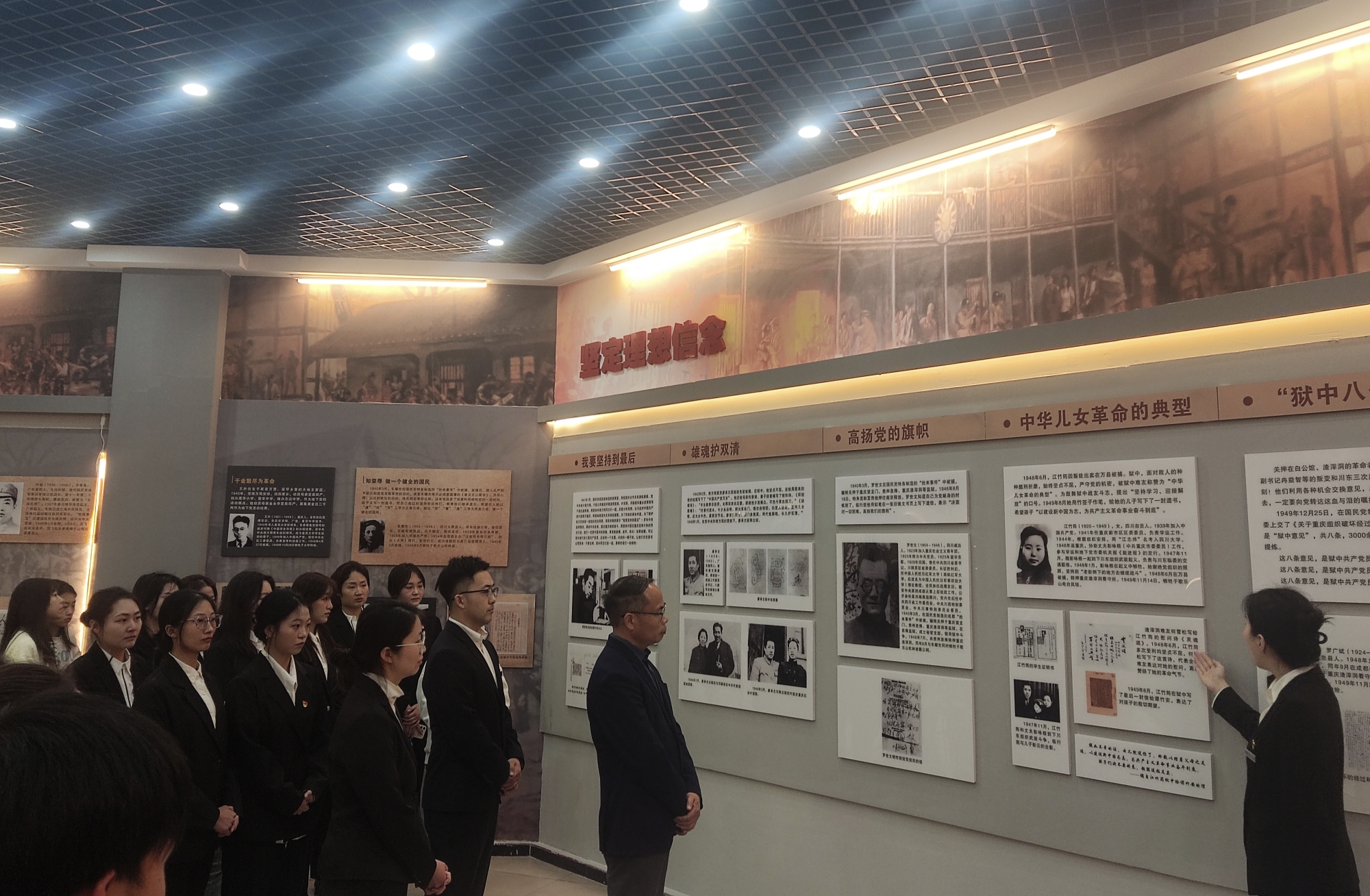 活动伊始,宣讲团成员陈雨露、毛瑶、孙傑三位同学共同合作,对红岩展厅进行了介绍。他们跌宕起伏、慷慨激昂的讲解,把同学们的思绪拉回到了全民族抗日战争时期。从红岩精神的内涵到红岩故事再到红岩精神的时代价值,无不充分体现了老一辈无产阶级革命家、共产党人和革命志士的崇高思想境界、坚定理想信念、巨大人格力量和浩然革命正气。