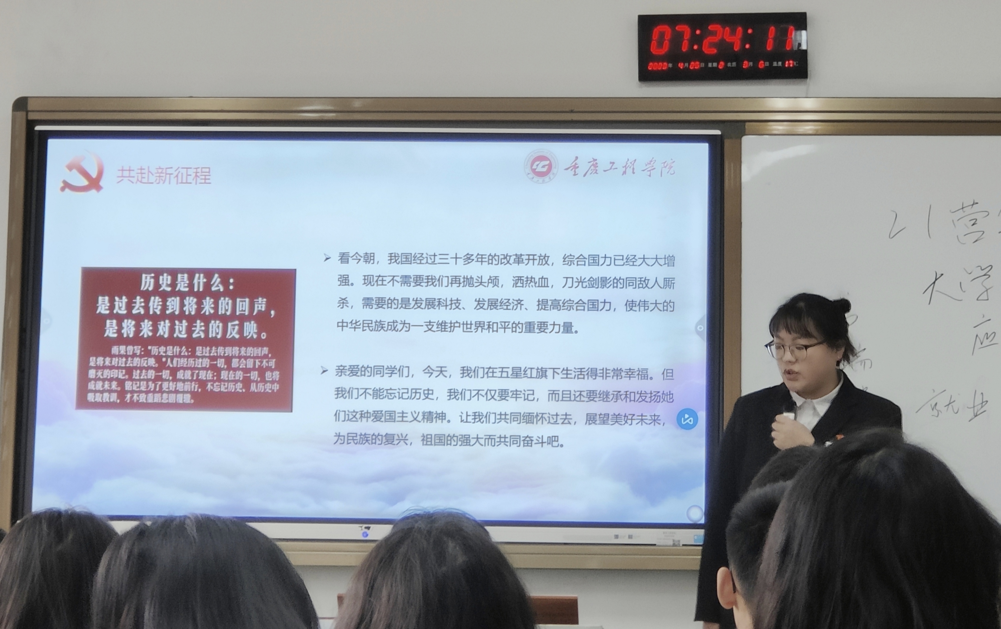 (文/图 学生党教中心 胡欣悦)为进一步引导青年学生牢记历史,以史为鉴,激发青年学生的爱国主义热情,管理学院党总支于4月25日在第六教学楼开展了“大学生微党课”进班级活动。9名学生预备党员走进晨课教室,向2021级同学们进行“历史上的今天”主题宣讲。