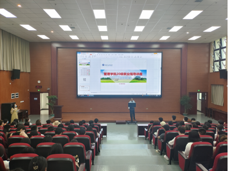 为进一步加强学生就业观教育,树立健康就业观,管理学院于2023年5月3日18:00在7807教室开展了“就业指导讲座”。本次班会由辅导员秦丽老师主持,学工主任王燕楠老师讲授。本次讲座共有20财管和电商专业150余名学生参加。
