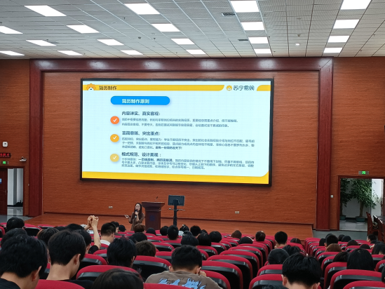5月19日下午,管理学院邀请重庆苏宁易购人力资源总监黄润女士来校开展职业生涯规划及求职技巧讲座,共有市场营销专业150余名学生参加。