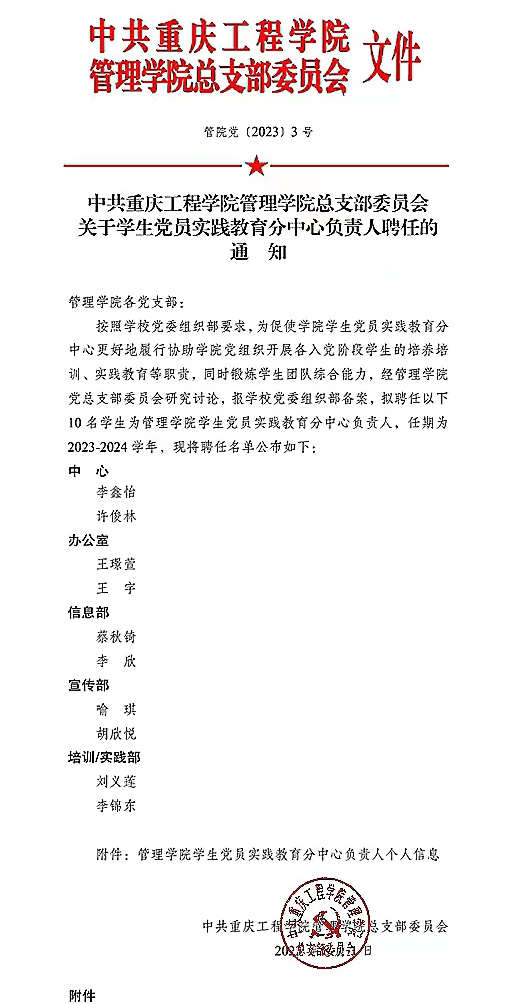 关于学生党员实践教育分中心负责人聘任的通知