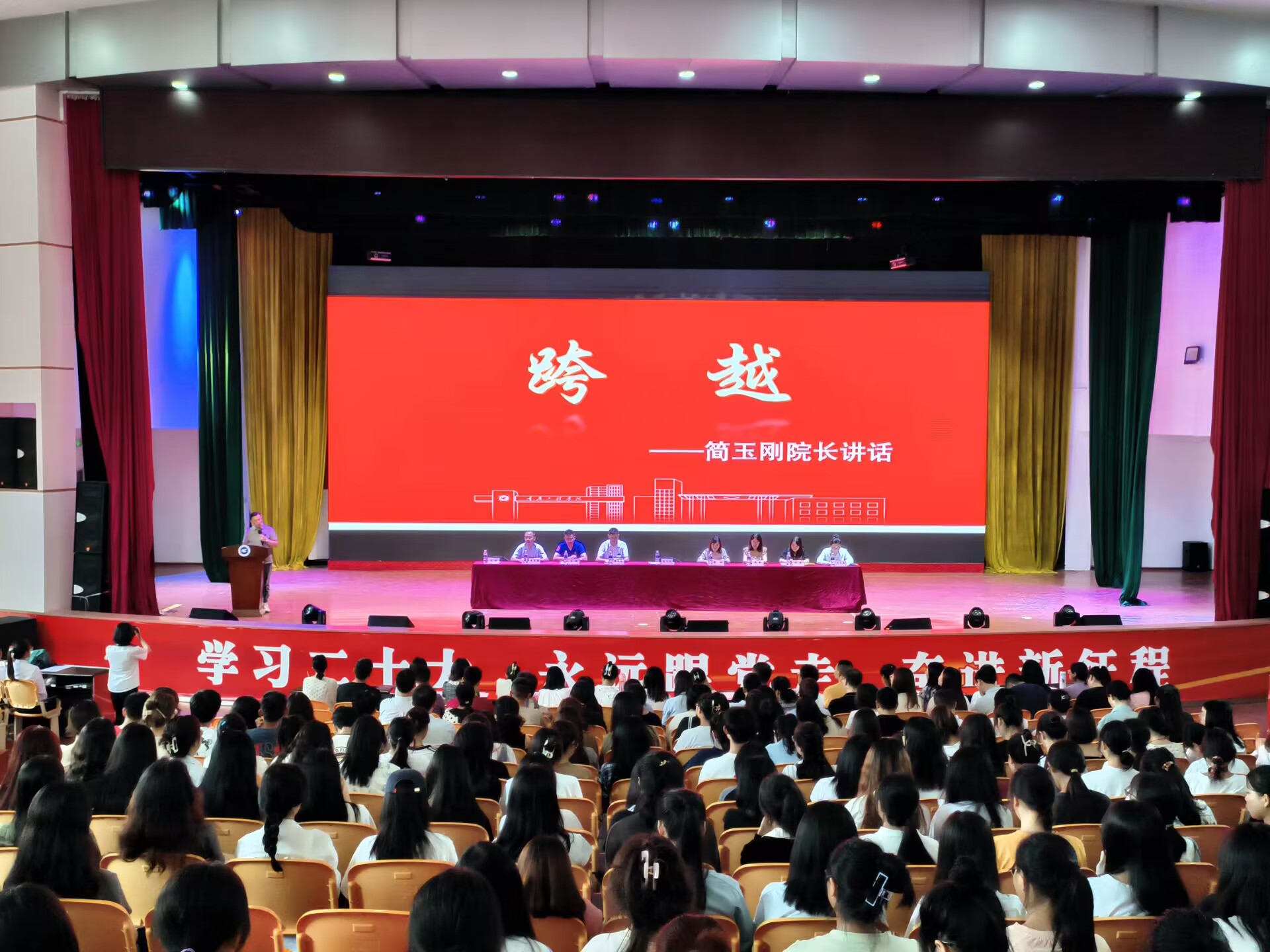 最后,简玉刚以“跨越”为题讲话,以同学们从高中到大学、大学生到职业人的两次“跨越”为引,鼓励同学们要敢于尝试,积极参加校内外比赛和活动,提前做好职业规划,并在学好专业的同时锻炼身体,做到劳逸结合,三年后顺利完成从“职业人”到“社会人”的第三次跨越。大会伴随着全体师生合唱校歌《香樟情怀》落下帷幕。