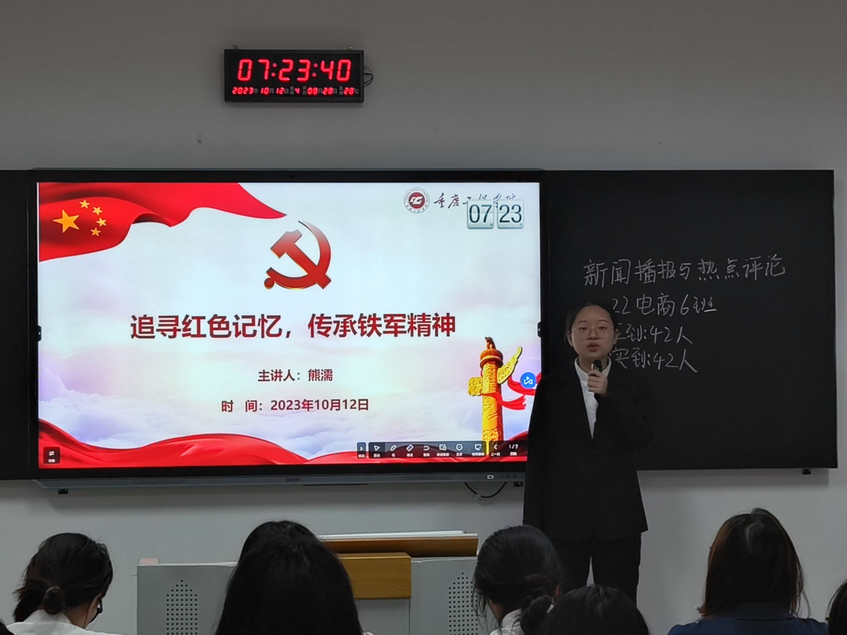 管理学院党总支开展“大学生微党课”进班级活动之 “追寻红色记忆,传承铁军精神”