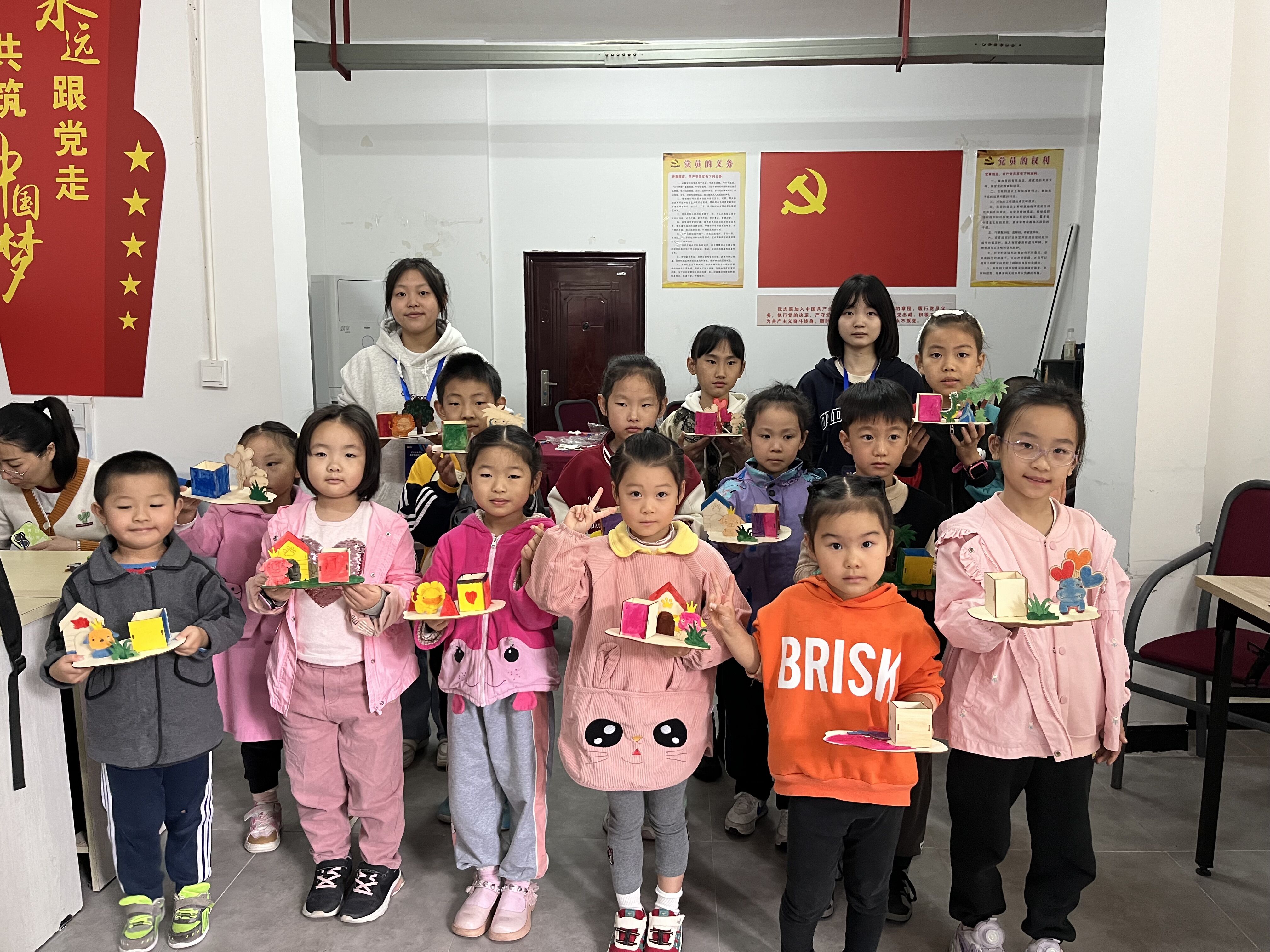 随后,志愿者向小朋友们展示了手工材料并按照步骤细心教学。小朋友们在家长的陪伴和志愿者的帮助下,逐渐掌握制作技巧。创意总是独一无二的,有的小朋友选择了小房子造型,有的小朋友选择了小动物造型......小朋友们纷纷专注于自己的创作,沉醉在手工的世界里。一旁的家长也时不时为小朋友们拍照、加油,现场氛围轻松愉快。没一会儿,一个个形态各异的手工笔筒呈现在大家眼前。当小朋友们拿着自己亲手制作的手工笔筒时,脸上洋溢的笑容是最具有感染力的。