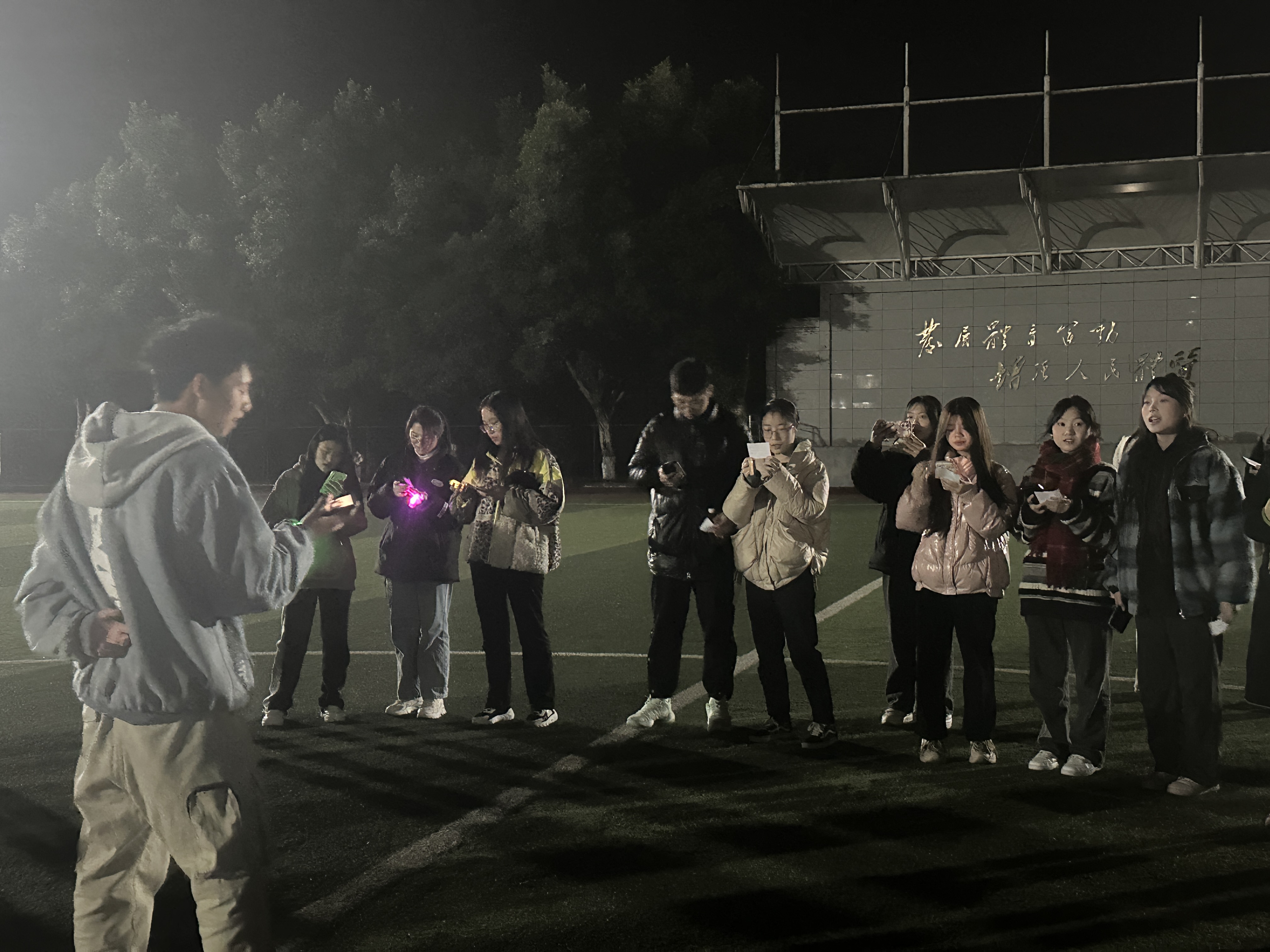 活动伊始,社团负责人朱成武对本次活动流程进行了简单讲解,鼓励同学们今晚都积极参与进活动游戏中,积极宣传党史知识,有所收获、有所成长。随后进入第一个活动环节——齐唱红歌,同学们聚拢在操场上,跟着优美的旋律,用心歌唱,用自己的声音来表达对党、对祖国独特的爱。活动进入第二个游戏环节——“红色游戏·党史知识学习”,将知识与游戏巧妙结合,利用游戏来充分调动同学们的积极性与自主性,让同学们在游戏的过程中自主学习党史知识,用一种新奇的方式,让同学们更加深刻地了解了党的发展历程。最后,在所有游戏活动结束后,进行了合影留念。