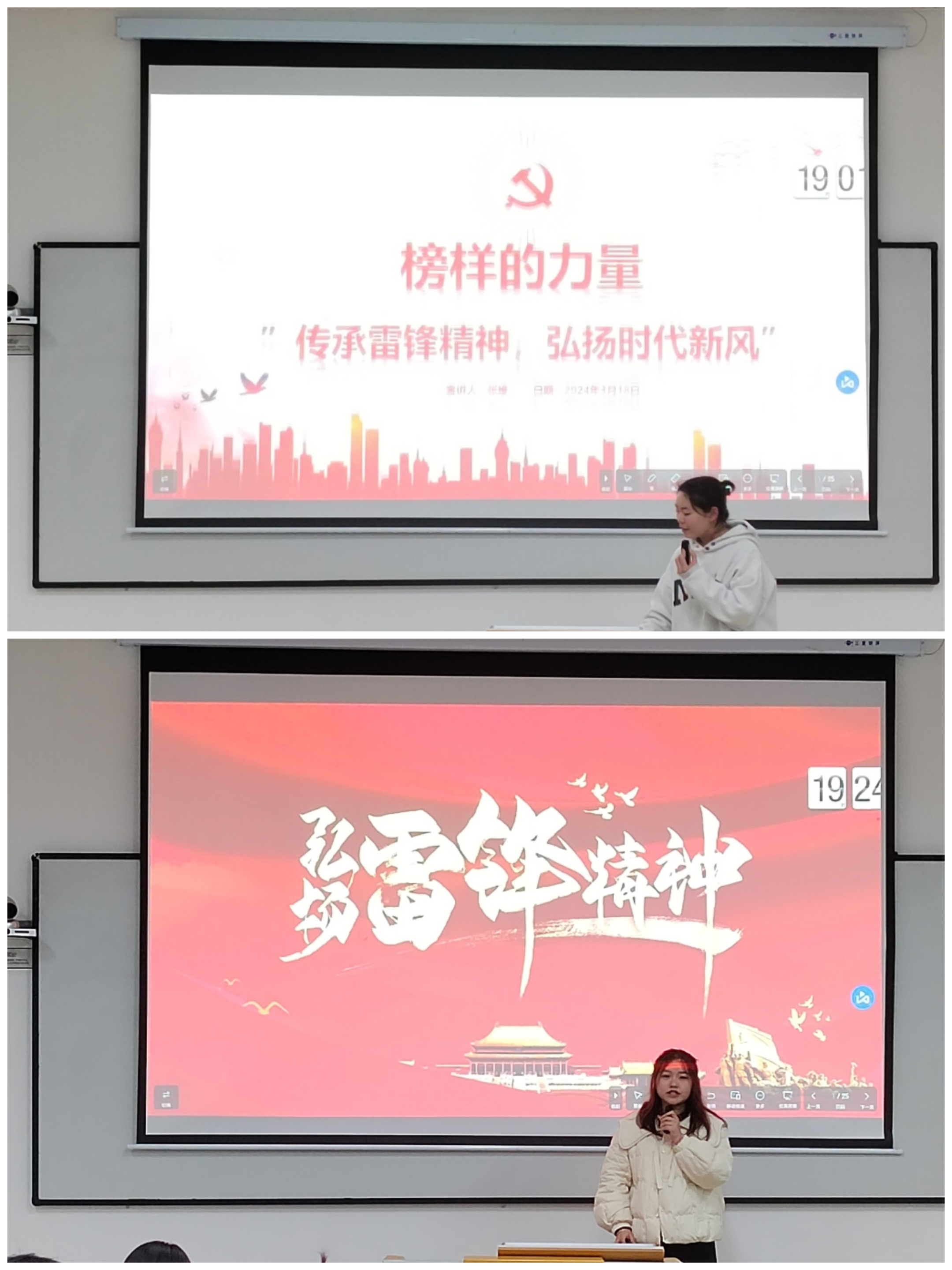 活动伊始,张维同学以“榜样的力量”为主题,向同学们介绍了雷锋同志的一生以及雷锋精神的时代内涵,呼吁大家作为新时代的青年应该怀着积极向上的人生态度服务人民、助人为乐,将雷锋精神内化于心外化于行。罗星月同学分享了雷锋日记的内容,在一篇篇真挚的日记中,雷锋同志把自己旺盛的青春全部献给了党,献给了人民。透过日记罗星月同学结合重工青年的实际生活,分享了在实践中同学们应该如何践行雷锋精神、追随雷锋步伐。他高尚的理想、信念、道德、情操,感染着在座的每一位同学。时政热点分享环节,同学们踊跃参与,发表看法,积极讨论,抒发自己的所思所想。