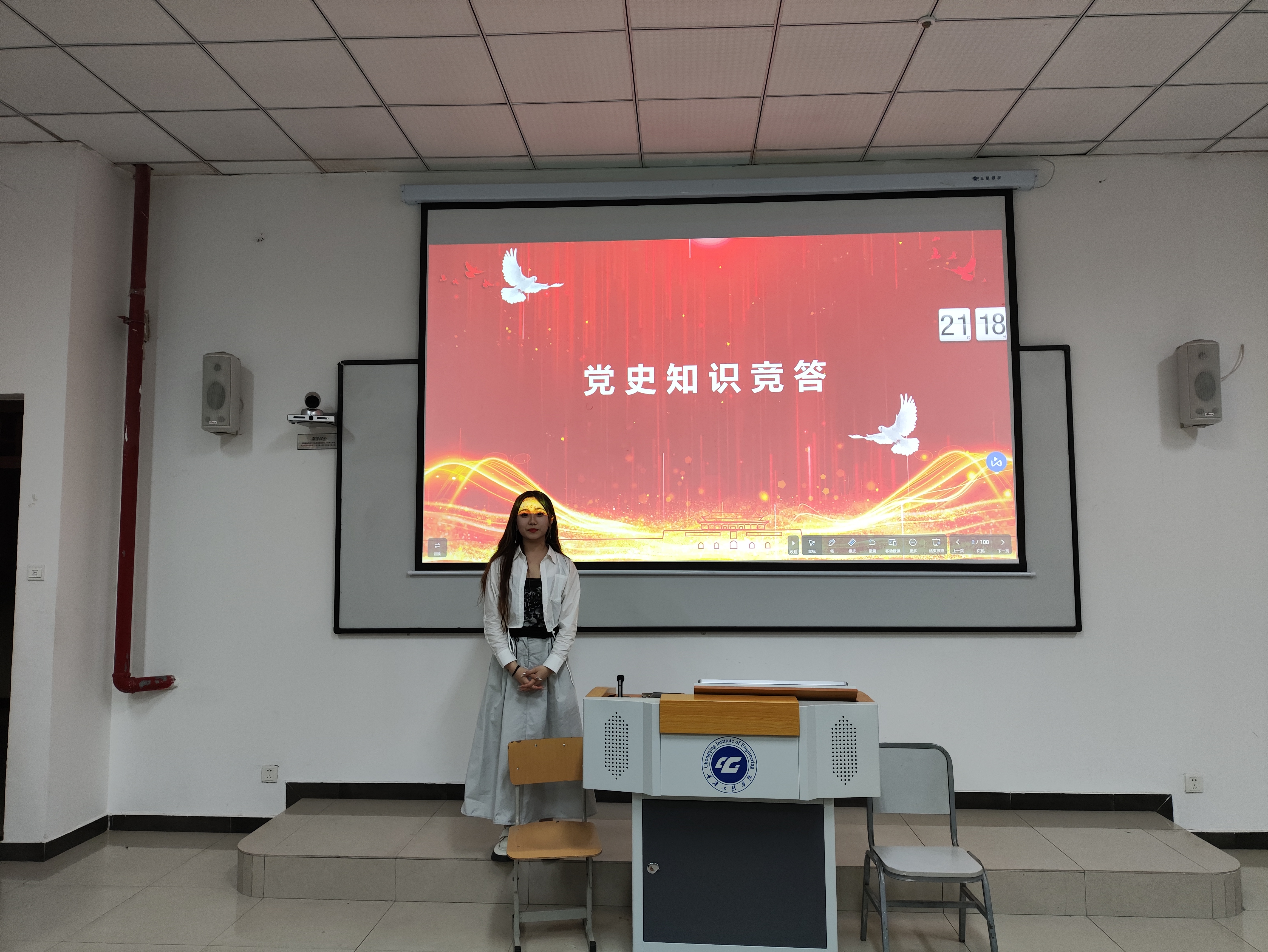 活动伊始,陈春伊同学向大家介绍了本次活动的相关规则。活动现场气氛活跃,同学们充分调动知识储备,沉着思考,快速抢答。党史竞答题以百年党史知识为内容,彰显了中国共产党的光辉历程,坚定了同学们的历史自信和理想信念,有效地检验了同学们前段时间的学习党史效果,增强了党性观念,真正做到学史明理、学史增信、学史崇德、学史力行。