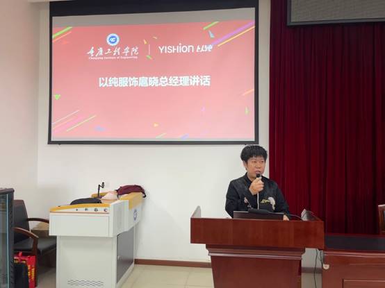 会上,余主任介绍了到场主要领导和会议议程。重庆工程学院管理学院院长简玉刚致辞,简院长首先感谢以纯各位领导对校企合作的支持和付出,感谢以纯为同学们提供的就业平台;然后告诉同学们以纯是一家有良好发展前景的企业、是一个很好的品牌、是可持续性良好的服饰领域头部品牌,同时以纯有系统的培养体系和人才发展规划,希望同学们能在企业通过实践实操提升自己的核心竞争力。