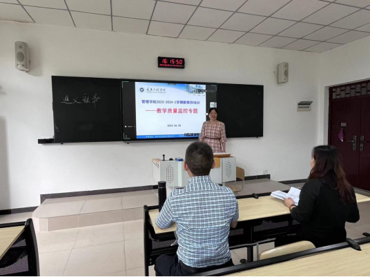 (文/图 办公室 周黎)为了更好地帮助新教师尽快适应教师角色,融入学校教师发展团队,从而增强教师的业务能力,提高教师的业务素质,管理学院特此开展2023-2024-2学期新教师系列培训,本次的培训主题是课程考核与教学质量监控专题,于2024年6月5日在6112教室召开,培训导师为教务科长朱凤,南泉校区新入职教师现场参训,双校校区教师在线参加。