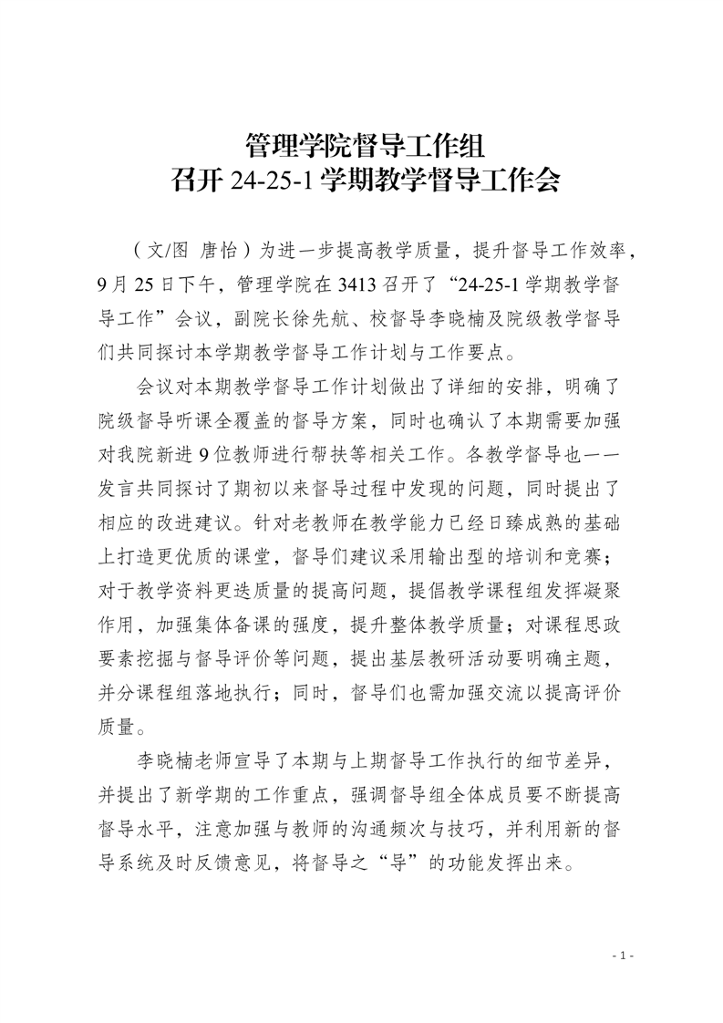 管理学院督导工作组召开24-25-1学期教学督导工作会