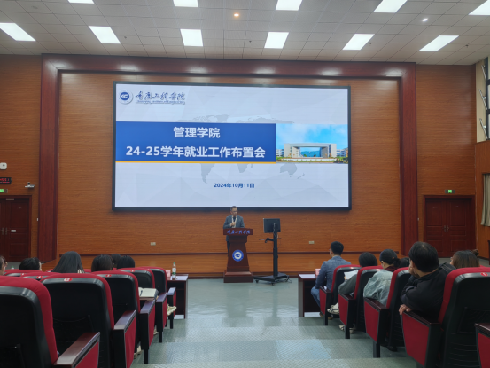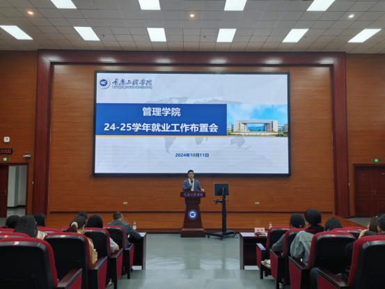 (文/图 就业科 张中义)在当前就业形势严峻的背景下,管理学院高度重视毕业生就业工作,于10月11日下午在7807报告厅举行2024-2025学年就业工作布置暨培训会议,旨在明确2024-2025学年就业工作目标,细化工作任务,提升就业指导服务水平,全力促进毕业生高质量充分就业。管理学院院长简玉刚、副院长李玲、徐先航,党总支书记尚伟及全体教职员工参加本次会议。