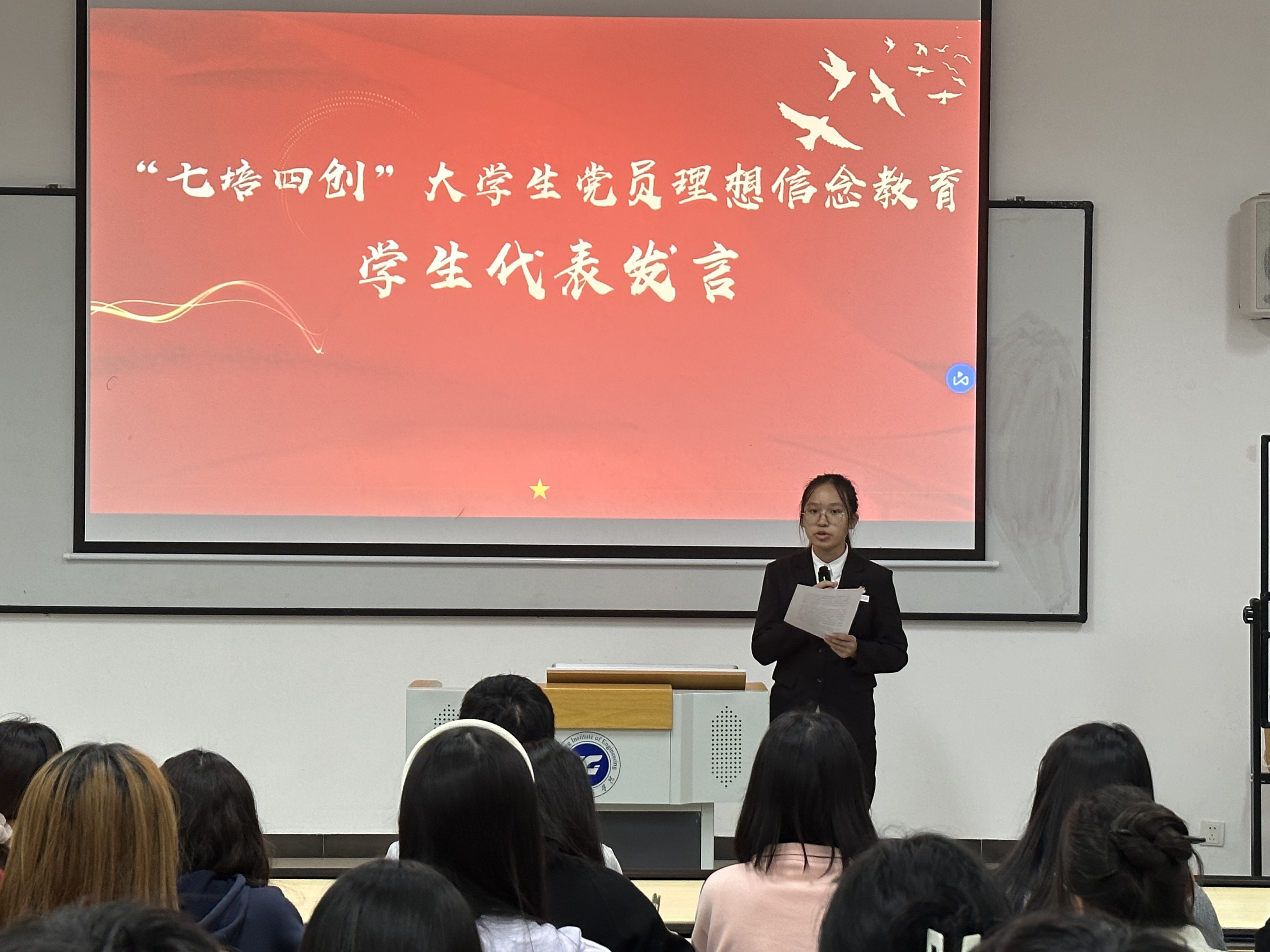 随后,“七培四创”大学生党员理想信念教育学生代表发言,表示大学生党员可以通过“大学生微党课”进班级这一极富意义的活动,在思想上不断向党组织靠拢,提升自身的党性修养,坚定为人民服务的信念。