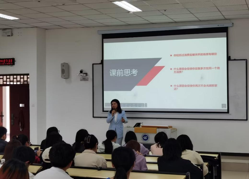 (文/图 数字营销系 陈颖)在竞争日益激烈的市场环境下,建立良好的客户关系对于企业的生存和发展至关重要,客户关系管理是市场营销学生的专业核心能力之一。10月30日下午,管理学院数字营销系在6教304成功举办了一场以“如何建立良好的客户关系”为主题的讲座,旨在帮助师生深入了解客户关系建立的策略与技巧,提升数字营销实践能力。本次专题讲座由数字营销系陈颖老师主持,面向22级市场营销专业的全体同学开展,为了达到更好的效果,数字营销系特邀请了有着20年汽车行业客户关系管理经验的重庆人和/金州保时捷中心CXO(高级客户体验官)彭玉洁作为主讲嘉宾来校,现场与同学们交流互动。