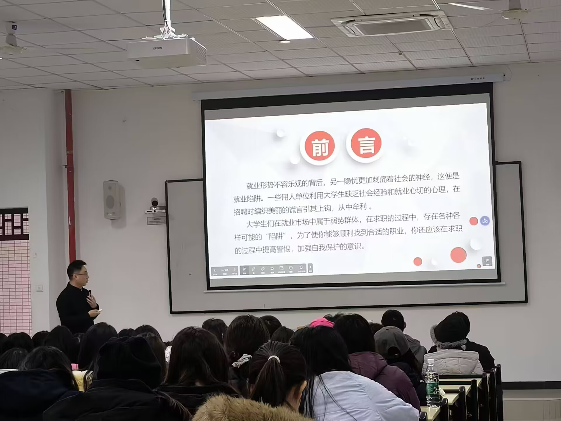 此次讲座李老师将当今社会组织现状展现在学生面前,并从四个核心部分:警惕求职“陷阱”、警惕就业歧视、就业协议与劳动合同的签订、社保权益揭示了求职过程中可能遇到的各种陷阱,如试用期陷阱、口头约定陷阱等,并提供了实用的应对技巧。在就业歧视部分,他详细解释了法律禁止的歧视领域,并提供了积极应对的策略。在就业协议与劳动合同签订部分,他强调了明确权利义务的重要性,并指导学生如何识别和避免“陷阱”合同。最后,在社保权益部分,他强调了社会保险的重要性,并解释了相关法律规定,确保学生们了解自己的权益。