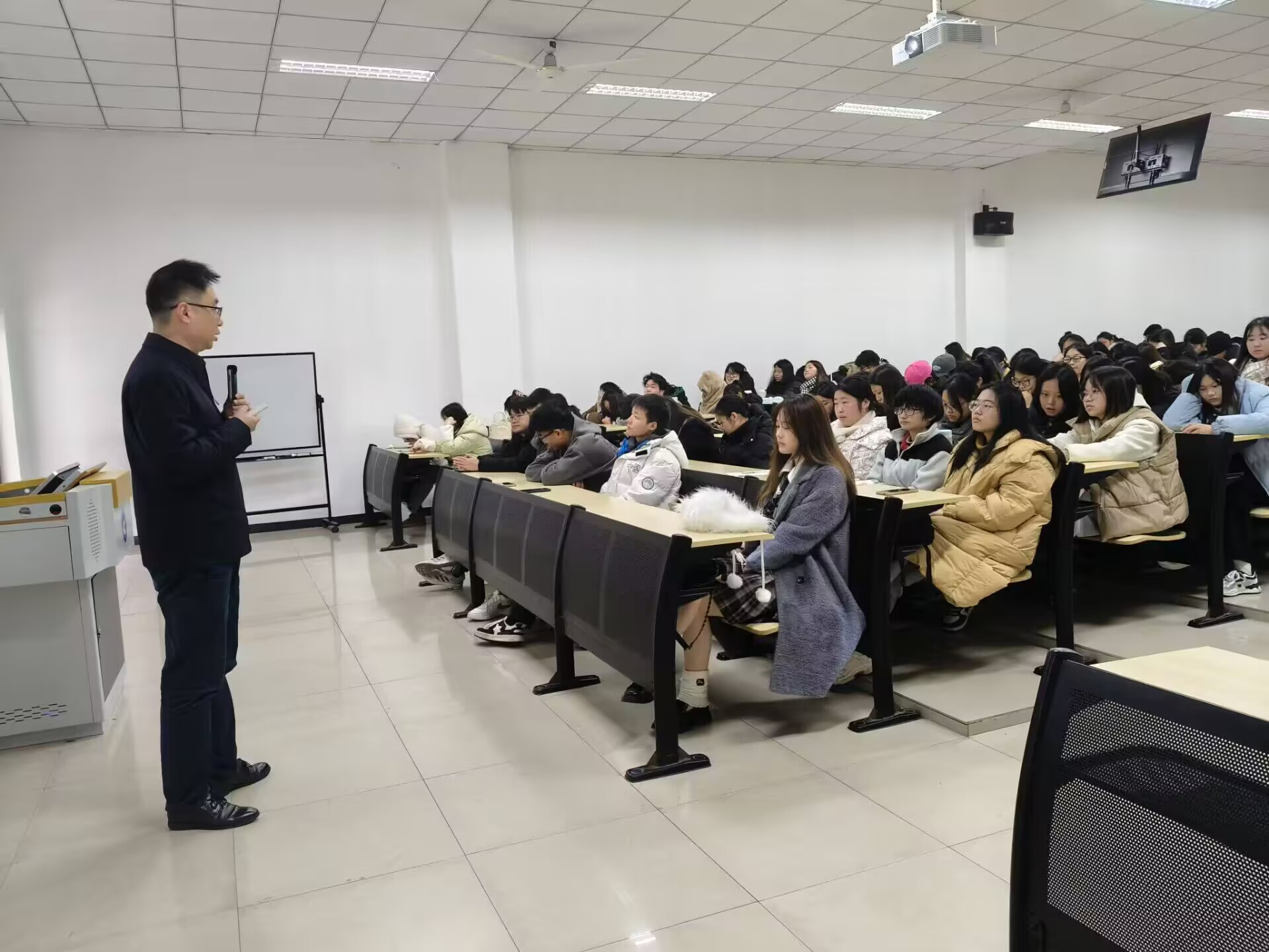 随着当今组织变革的日益复杂,企业在变革过程中愈加强调灵活性和适应能力。这些变化为大学生的求职过程带来了新的风险和挑战。为了帮助同学们更好地应对这些风险与挑战,人力资源系于2024年12月18日14:00-15:30在第六教学楼203开展了“大学生求职权益保护全攻略”一课双师讲座,本次讲座特邀重庆菲斯克人力资源管理有限公司总经理助理、首席风控官李铮先生作为主讲嘉宾,他凭借丰富的人力资源管理经验和深厚的专业知识,为一百四十余位学生们带来了一场极具价值的专业讲座。
