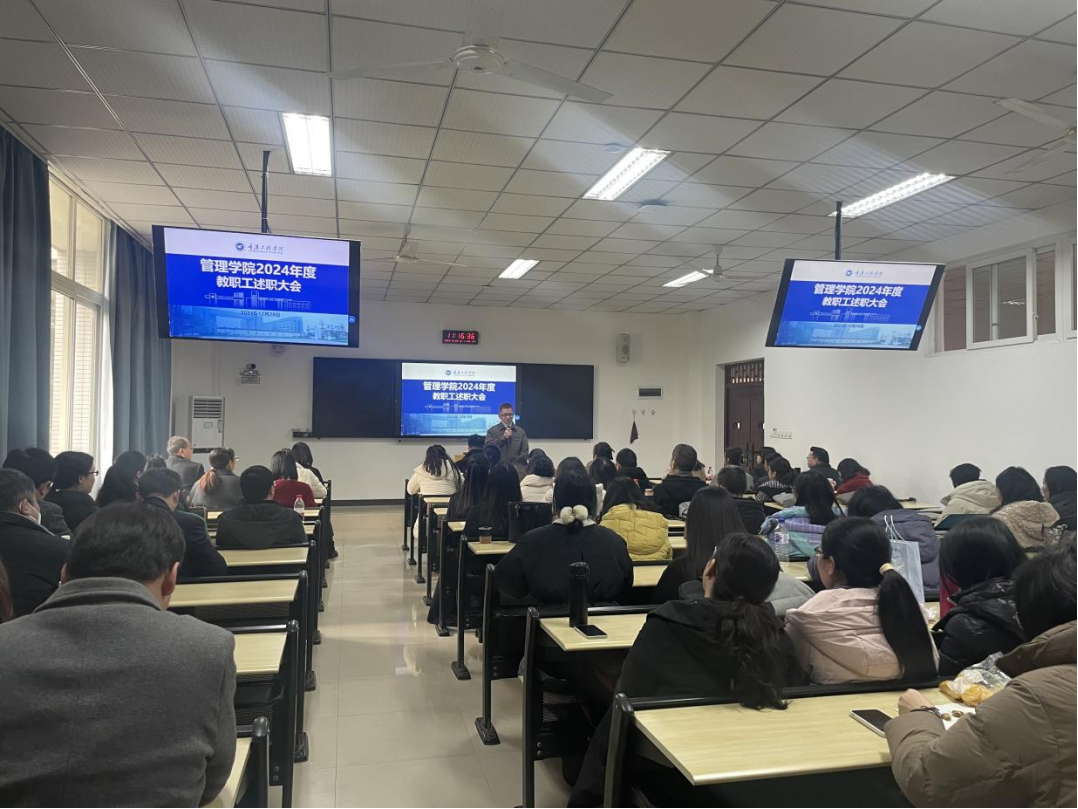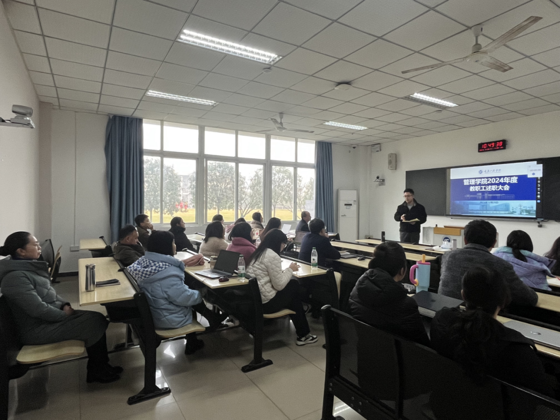 (文/图 办公室 周黎)2024年12月28日,为了全面回顾本年度各项工作成果,促进团队协作与相互学习,激励教职工不断提高业务水平、工作绩效和自身素质,结合学校及学院教职工考核相关规定要求,管理学院特此开展2024年教职工年终述职大会,副校长兼工会主席王琼花、学院全体院领导及教职工参加。